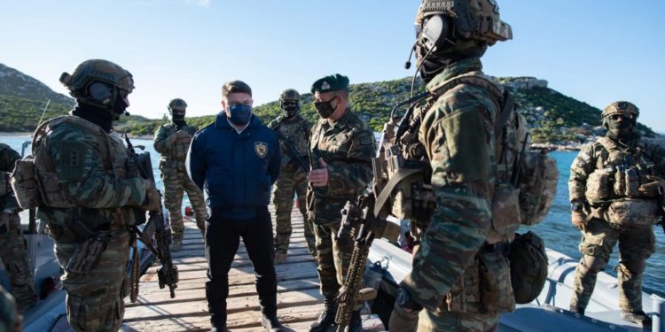 Ο ΥΦΕΘΑ Νικόλαος Χαρδαλιάς, το διήμερο Παρασκευή 24 και Σάββατο 25 Δεκεμβρίου 2021, επισκέφθηκε Μονάδες, Επιτηρητικά Φυλάκια και Υπηρεσίες των Ενόπλων Δυνάμεων και του Λιμενικού Σώματος στην Περιοχή Ευθύνης της 95 Ανώτερης Διοίκησης Ταγμάτων Εθνοφυλακής (ΑΔΤΕ), στο νησιωτικό σύμπλεγμα Καστελλόριζου.