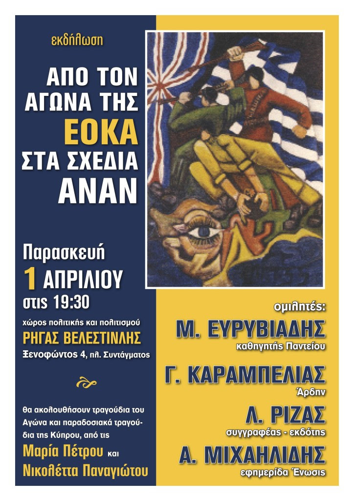 Το περιοδικό Άρδην οργανώνει την Παρασκευή 1 Απριλίου στις 19.30 εκδήλωση – συζήτηση με θέμα: “Από τον αγώνα της ΕΟΚΑ στα σχέδια Ανάν“