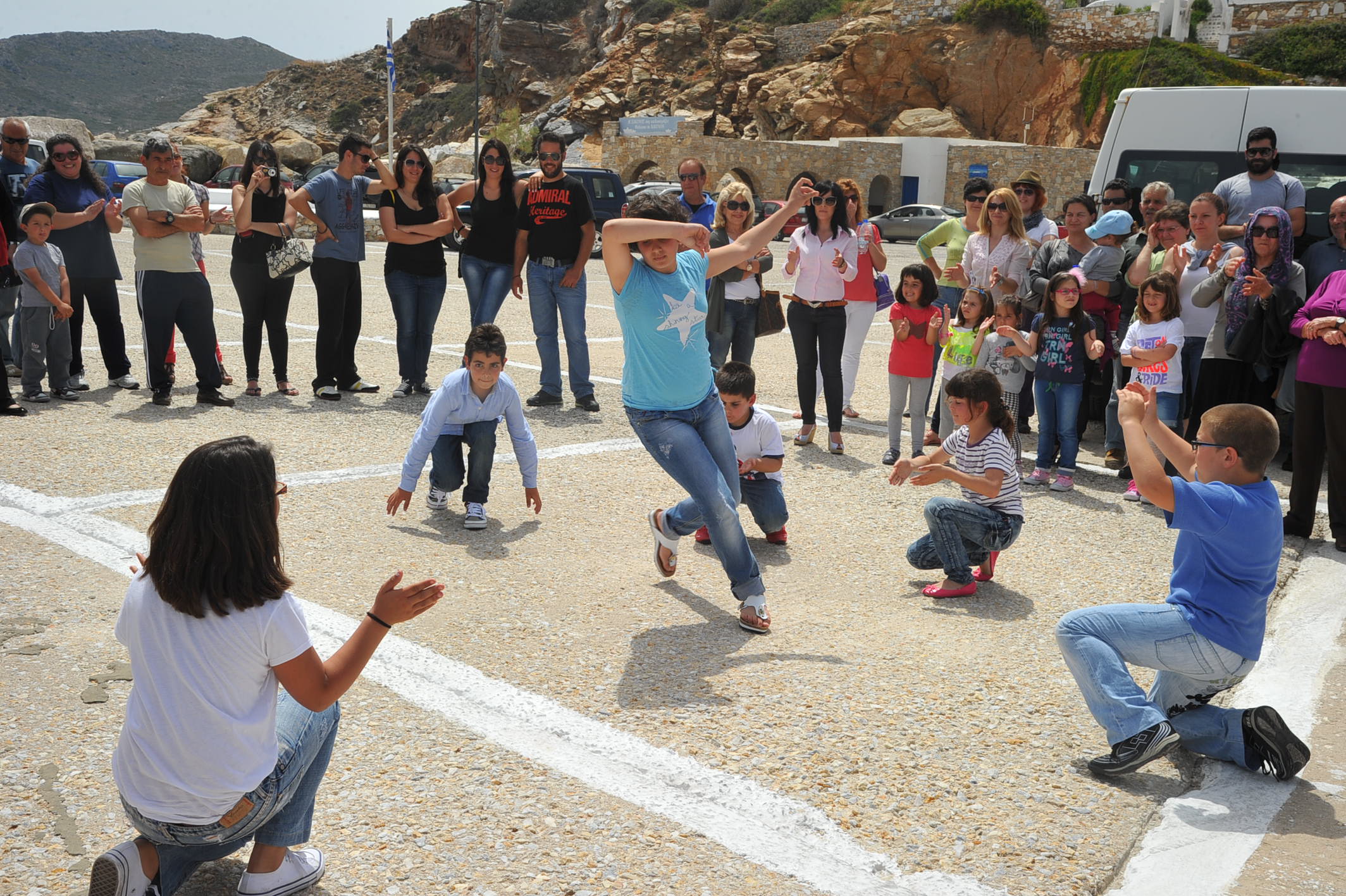 Τα παιδιά του Δημοτικού Σχολείου είχαν ετοιμάσει χορευτικό για να καλωσορίσουν την ομάδα και την υποδέχθηκαν με ζωγραφιές που έφτιαξαν για να πουν »ευχαριστώ» με το δικό τους μοναδικό τρόπο.