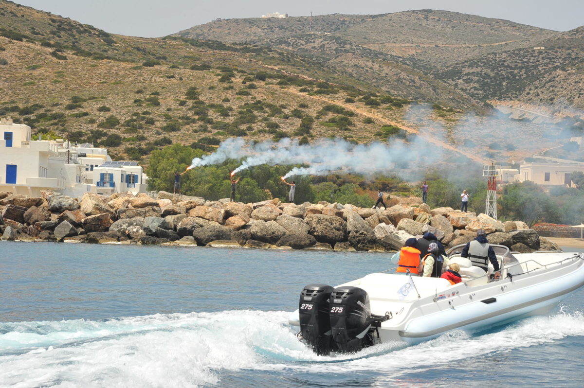 Η Σίκινος ήταν ο πρώτος σταθμός της εθελοντικής »Ομάδας Αιγαίου» στο πλαίσιο της φετινής εξόρμησης σε ακριτικά νησιά με 11 φουσκωτά και ένα πλωτό ασθενοφόρο για προσφορά υλικών στα σχολεία και ιατρική εξέταση των κατοίκων .