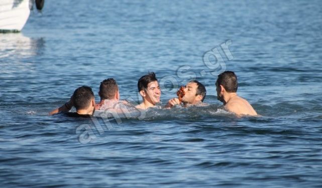 Στη συνέχεια τελέστηκε ο καθαγιασμός των υδάτων στην παραλία Αλμυρού.