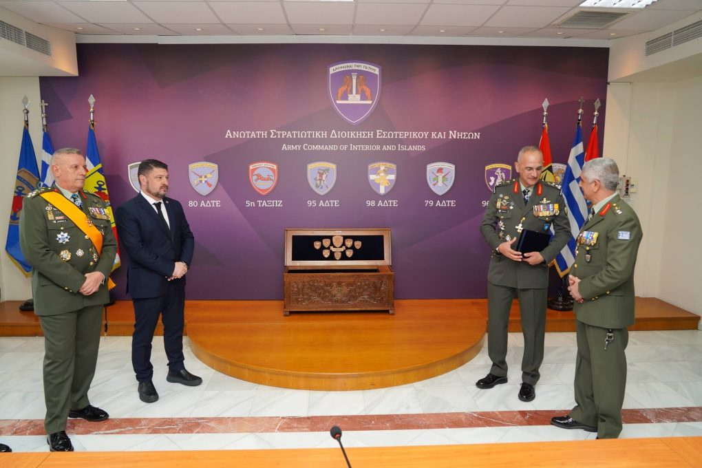 Την Παρασκευή 27 Ιανουαρίου 2023, πραγματοποιήθηκε η τελετή παράδοσης – παραλαβής καθηκόντων του Διοικητή Ανώτατης Στρατιωτικής Διοίκησης Εσωτερικού και Νήσων (ΑΣΔΕΝ) «ΑΙΓΕΑΣ» από τον Αντιστράτηγο Δημήτριο Χούπη στον Αντιστράτηγο Σωτήριο Κωστάκογλου, στο Στρατόπεδο «ΣΑΚΕΤΑ Β΄» στον Καρέα.