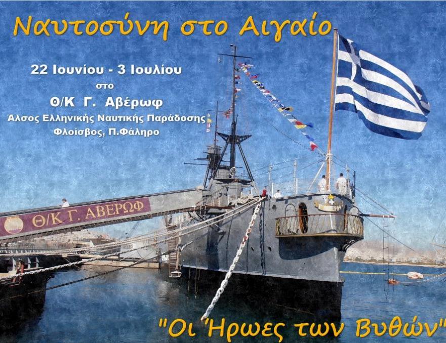 Η Πολιτιστική Ομάδα “Αρχιπέλαγος”, σε συνεργασία με το Γενικό Επιτελείο Ναυτικού (ΓΕΝ) και το Θ/Κ Γ. Αβέρωφ, παρουσιάζουν την θεματική έκθεση με τίτλο “Ναυτοσύνη στο Αιγαίο – Οι Ήρωες των Βυθών” , στο Θ/Κ Γ. Αβέρωφ (Άλσος Ελληνικής Ναυτικής Παράδοσης – Φλοίσβος – Παλαιό Φάληρο) .