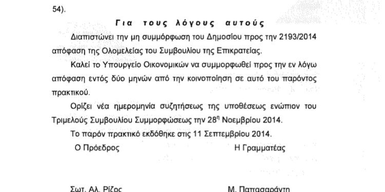 Αυτή είναι η απόφαση της Επιτροπής Συμμόρφωσης του ΣτΕ
