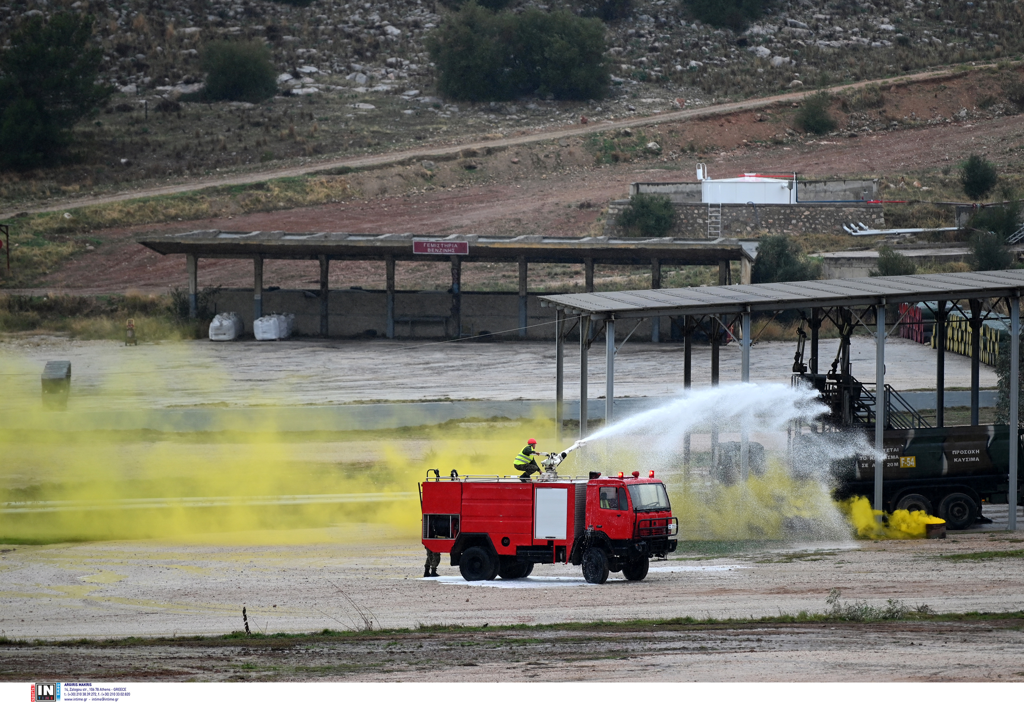 Η άσκηση περιελάμβανε αντιμετώπιση πυρκαγιάς, γεφύρωση ρήγματος σε επαρχιακή οδό λόγω έντονων βροχοπτώσεων, απολύμανση προσωπικού από διαρροή επικίνδυνου υγρού – αερίου και απεγκλωβισμό μολυσμένου προσωπικού.