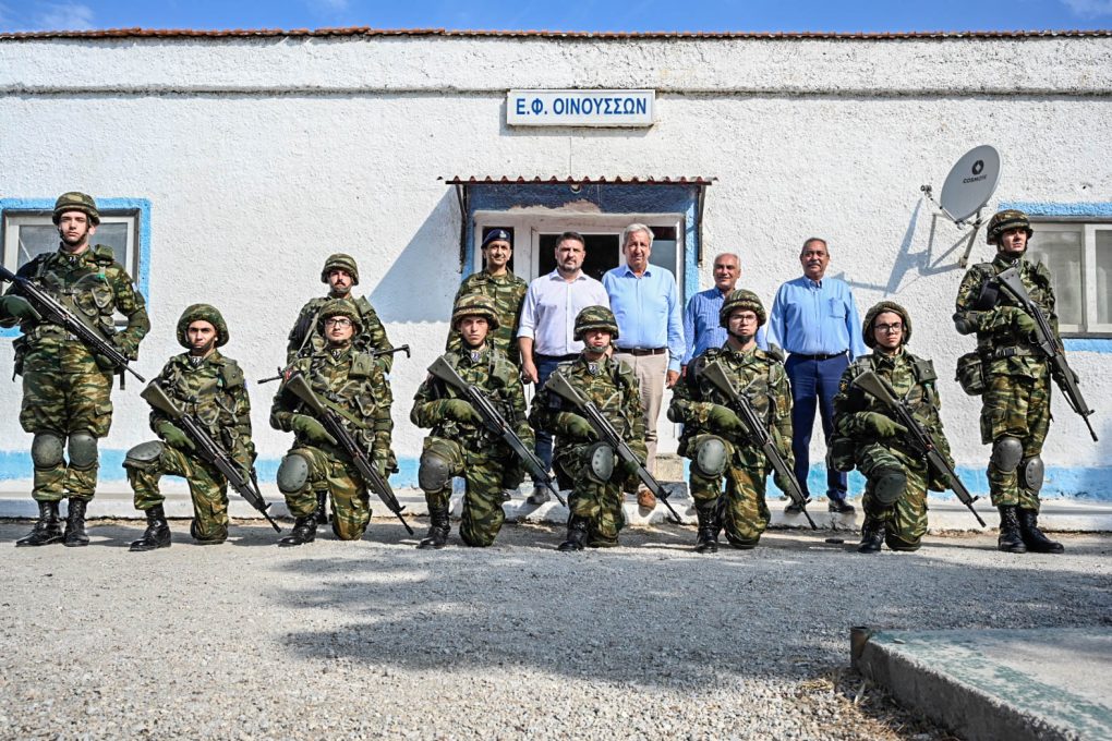 Ο Υφυπουργός Εθνικής Άμυνας κ. Νικόλαος Χαρδαλιάς, πραγματοποίησε σήμερα, Κυριακή 27 Αυγούστου 2023, επισκέψεις στα Επιτηρητικά Φυλάκια (ΕΦ) «Οινουσσών» και «Παναγιάς», στην Περιφερειακή Ενότητα Χίου, συνοδευόμενος από τον Διοικητή της 96 Ανώτερης Διοίκησης Ταγμάτων Εθνοφυλακής, Ταξίαρχο Χαράλαμπο Αμπατζίδη.