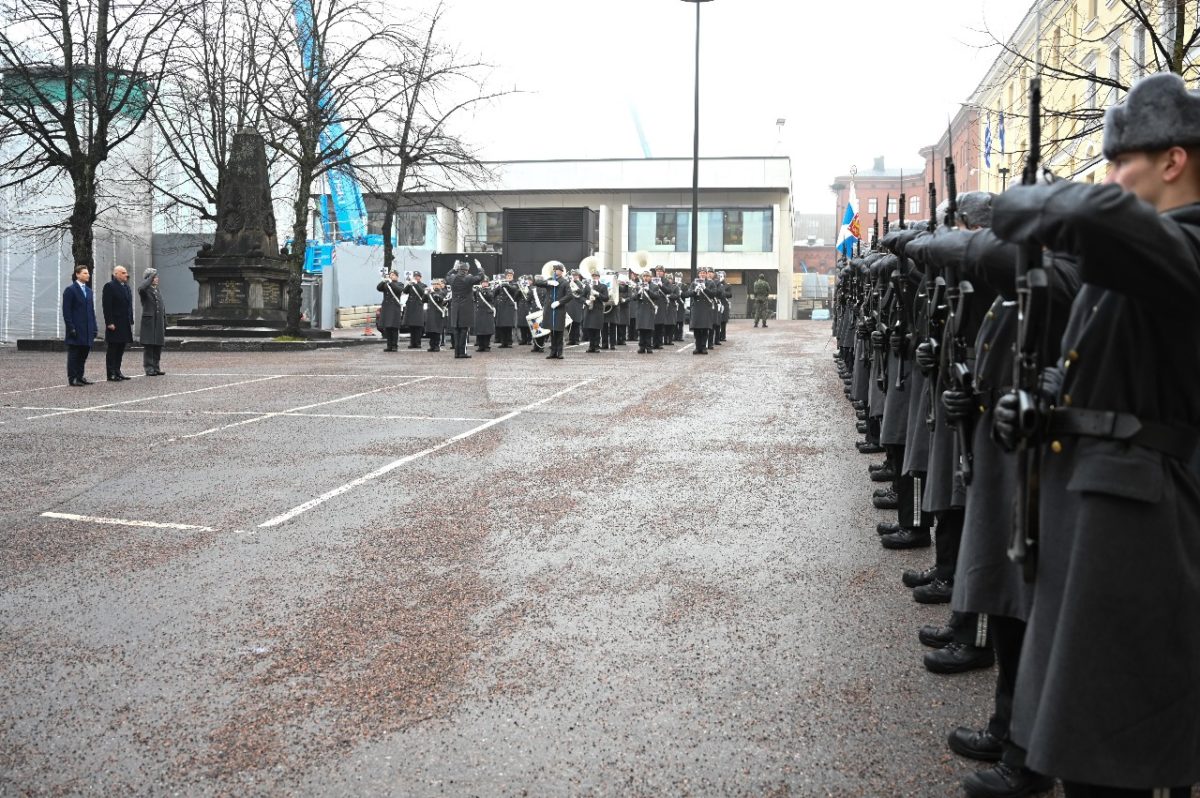 «Βρίσκομαι σήμερα εδώ, στο Ελσίνκι, στην πρώτη επίσκεψή μου ως Υπουργός Εθνικής Άμυνας. Είναι η τρίτη μου βεβαίως (επίσκεψη) ως Υπουργός της κυβέρνησης Mητσοτάκη. Η Ελλάδα και η Φινλανδία έχουν πολλές ομοιότητες. Είναι χώρες μεσαίου μεγέθους, βρίσκονται όμως και οι δύο δίπλα σε μεγάλους γείτονες που έχουν αναθεωρητικές φιλοδοξίες.