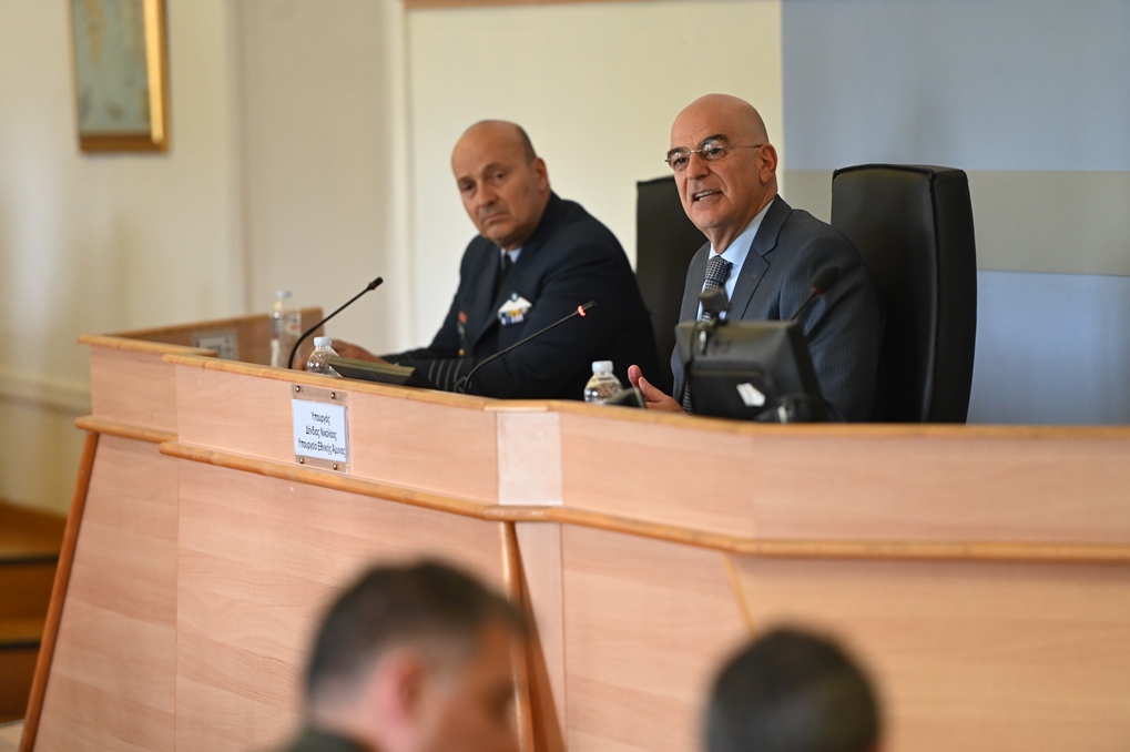 Ο Υπουργός Εθνικής Άμυνας, Νίκος Δένδιας, επισκέφθηκε χθες, Τρίτη 16 Απριλίου 2024, τη Σχολή Εθνικής Άμυνας (ΣΕΘΑ), όπου και απηύθυνε ομιλία στους σπουδαστές της 76ης Εκπαιδευτικής Σειράς, ενώ τον Υπουργό Εθνικής Άμυνας υποδέχθηκε ο Διοικητής της ΣΕΘΑ Αντιστράτηγος Αθανάσιος Σαρδέλλης.