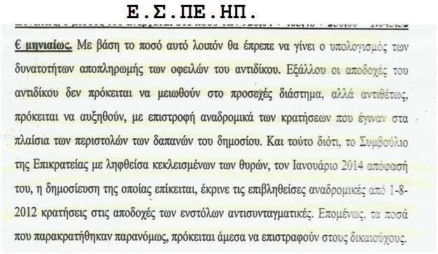 3. Παρακαλούμε για την ενημέρωσή σας και τις ενέργειές σας θέλοντας να σας τονίσουμε ότι οι μειώσεις που έχουν υποστεί οι Στρατιωτικοί είναι από τις μεγαλύτερες στους Έλληνες εργαζομένους ακόμη και μετά από την μερική συμμόρφωση της Πολιτείας στην απόφαση του ΣτΕ.