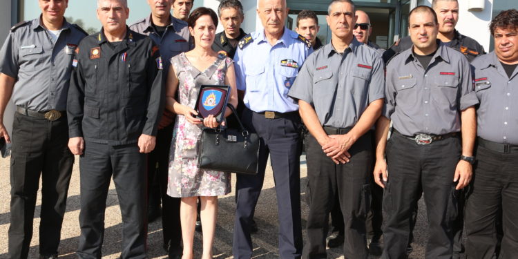 Στο πλαίσιο της εκπαίδευσης των Ισραηλινών πυροσβεστών, στις 27 Αυγούστου η νέα ορισθείσα Πρέσβης του Ισραήλ, κ. Ιρίτ Μπεν- Άμπα επισκέφθηκε τις εγκαταστάσεις της 1ης ΕΜΑΚ όπου την υποδέχθηκε ο Αρχηγός του Ελληνικού Πυροσβεστικού Σώματος, Αντιστράτηγος Βασίλειος Παπαγεωργίου και ο Διοικητής της 1ης ΕΜΑΚ, Αρχιπύραρχος Αθανάσιος Σερεντέλλος. Η πρέσβειρα ευχαρίστησε τον κ. Παπαγεωργίου για την φιλοξενία της Ισραηλινής ομάδας και άκουσε τις εντυπώσεις των συνεκπαιδευόμενων Ελλήνων και Ισραηλινών πυροσβεστών για την συνεργασία τους, οι οποίες ήταν άριστες. Η κ. Μπεν -Άμπα τόνισε την σημασία που αποδίδει η Ισραηλινή Κυβέρνηση στη διμερή συνεργασία στον τομέα της πολιτικής προστασίας.