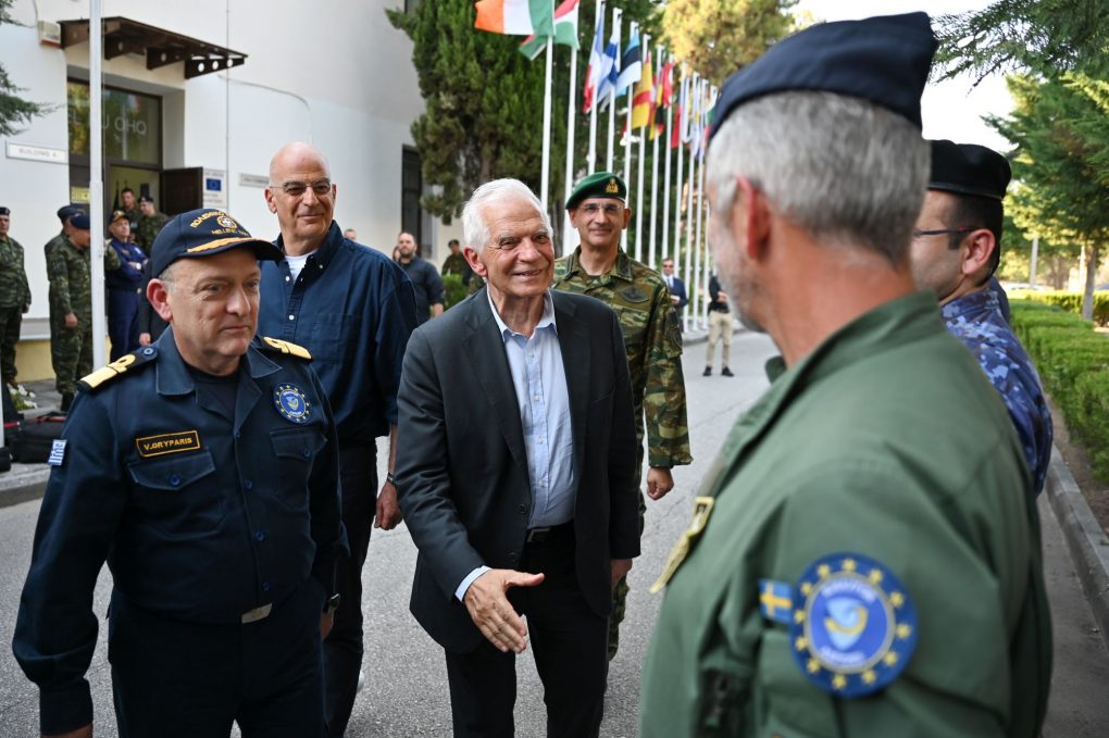 Ο Υπουργός Εθνικής Άμυνας (ΥΕΘΑ) Νίκος Δένδιας, μαζί με τον Ύπατο Εκπρόσωπο της Ευρωπαϊκής Ένωσης για θέματα Εξωτερικής Πολιτικής και Πολιτικής Ασφαλείας και Αντιπρόεδρο της Ευρωπαϊκής Επιτροπής, Ζοζέπ Μπορέλ (Josep Borrell), πήγαν στη Λάρισα, όπου επισκέφθηκαν το Στρατηγείο της Επιχείρησης «ΑΣΠΙΔΕΣ» (OHQ EUNAVFOR ASPIDES), στο Ελληνικό Στρατηγείο Επιχειρήσεων της Ευρωπαϊκής Ένωσης (ΕΣΕΕΕ).