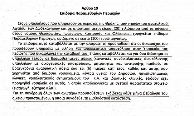 Στο νομοσχέδιο που κατέθεσε ο υπουργός Οικονομικών Ευκλείδης Τσακαλώτος και περιλαμβάνει ρυθμίσεις για τα μισθολογικά των δημοσίων υπαλλήλων , γίνονται ρυθμίσεις για το επίδομα παραμεθορίου. Δυσμενέστερες από τις επικρατούσες αφού όπως προβλέπει το νομοσχέδιο το επίδομα παραμεθορίου θα το λαμβάνουν όσοι δημόσιοι υπάλληλοι υπηρετούν σε νησιά του Ανατολικού Αιγαίου,στη Θράκη και σε τέσσερις νομούς ακόμη της μεθορίου αλλά σε απόσταση μέχρι 20 χιλιόμετρα από τα σύνορα. Με απλά λόγια περιορίζεται ο αριθμός αυτών που θα το εισπράττουν.