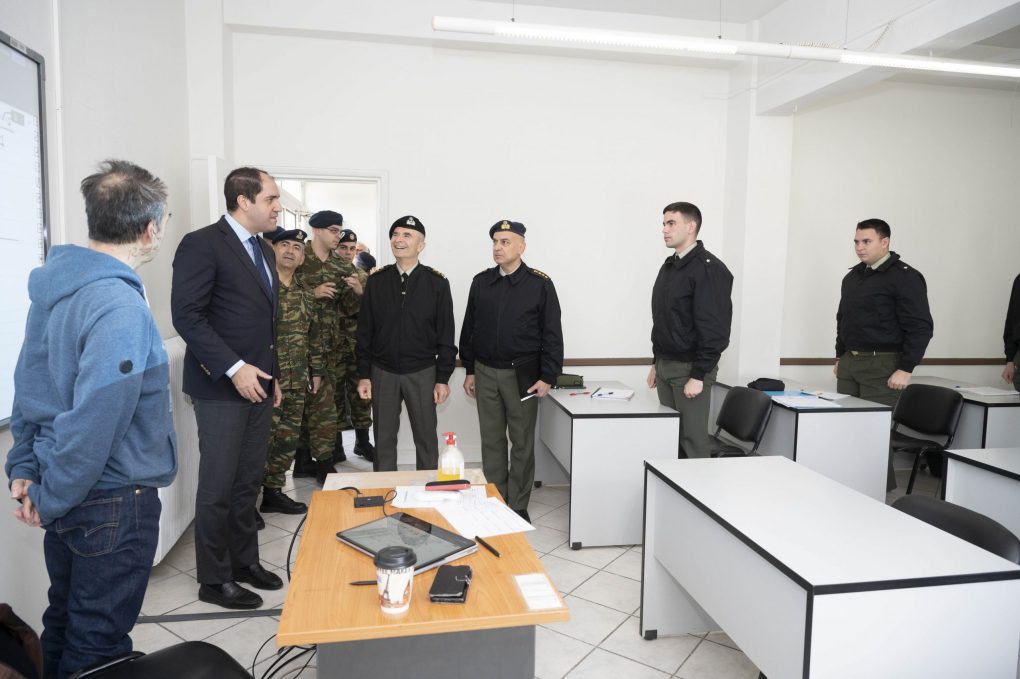 Στη συνέχεια ο ΥΦΕΘΑ επισκέφθηκε την ΣΤΕΑΧ, όπου συνομίλησε με τους σπουδαστές και τους ευχαρίστησε για την αφοσίωση και το έργο τους μεταφέροντας την απόλυτη στήριξη της Πολιτικής και Στρατιωτικής ηγεσίας των Ενόπλων Δυνάμεων.