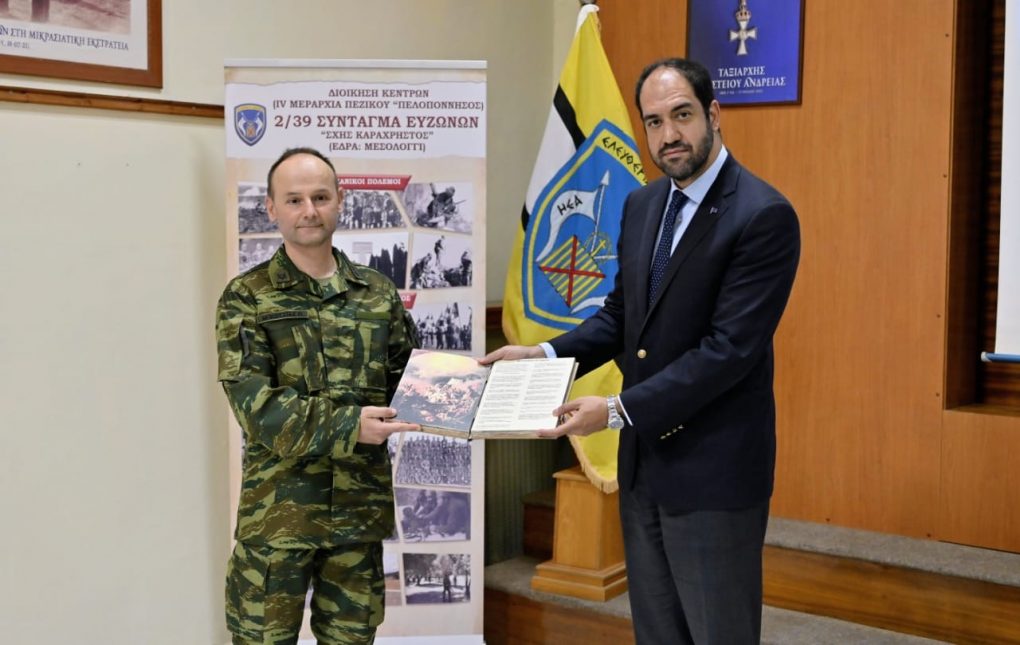 Ο Υφυπουργός Εθνικής Άμυνας (ΥΦΕΘΑ) κ. Γιάννης Κεφαλογιάννης, επισκέφθηκε χθες, Παρασκευή 24 Μαΐου 2024, το 2/39 Σύνταγμα Ευζώνων (ΣΕ) στο Μεσολόγγι, συνοδευόμενος από τον Διοικητή ΑΣΔΥΣ Αντιστράτηγο Δημήτριο Μπολομύτη και τον Διοικητή IV Μεραρχίας Πεζικού “Πελοπόννησος” (ΔΙΚΕ) Υποστράτηγο Απόστολο Τσουλουβή.