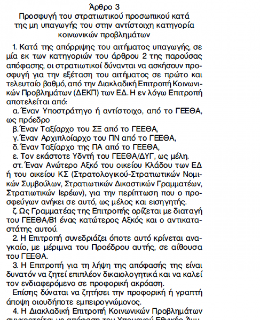Πολλά τα μηνύματα που λάβαμε για την επιτροπή αντιμετώπισης κοινωνικών προβλημάτων των στρατιωτικών που ανακοίνωσε ο υπουργός Εθνικής Άμυνας.