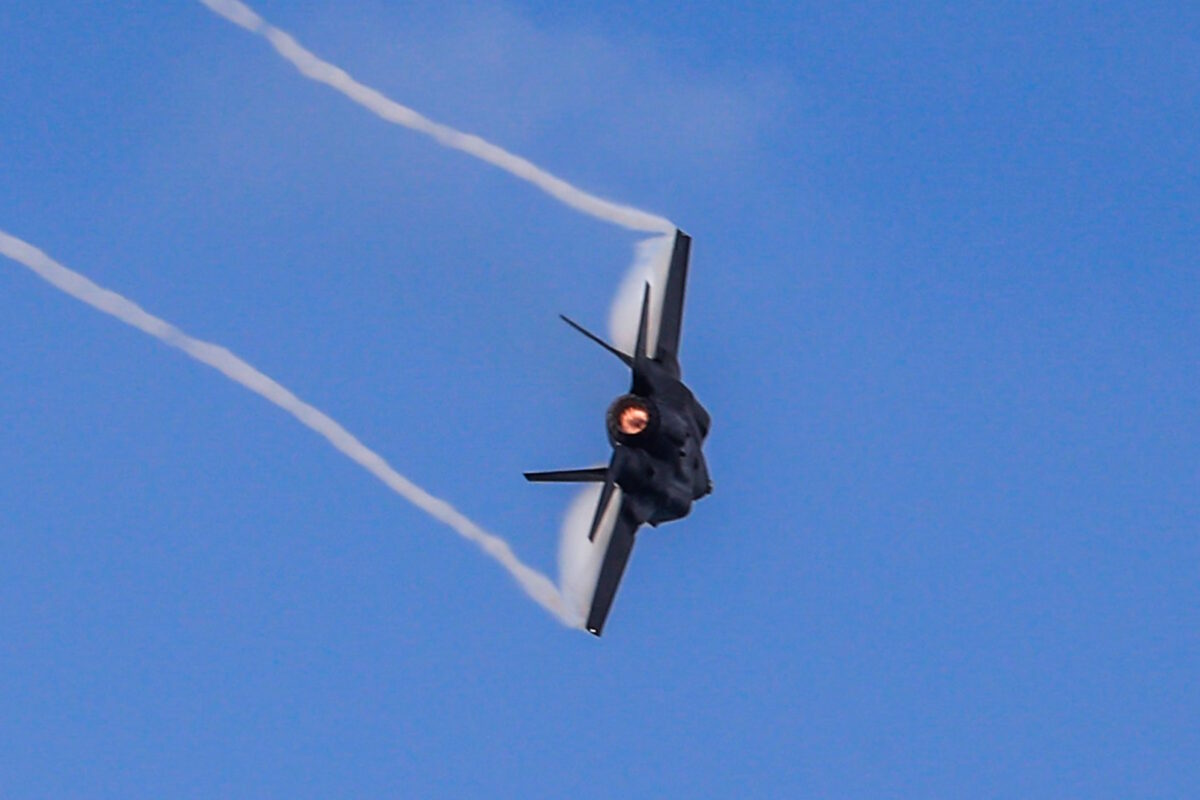 Η εντυπωσιακή εκδήλωση «άνοιξε» με ένα stealth μαχητικό αεροσκάφος πολλαπλών ρόλων πέμπτης γενιάς τύπου F-35.