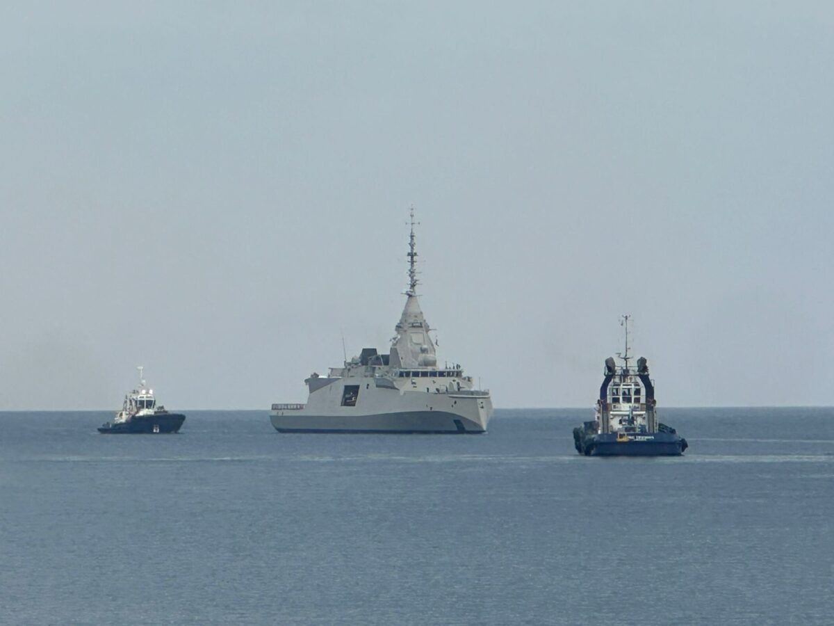Η φρεγάτα FDI «Κίμων» μπαίνει στο λιμάνι της Λεμεσού στην Κύπρο, στην πρώτη της αποστολή που αποκτά και συμβολικό χαρακτήρα.