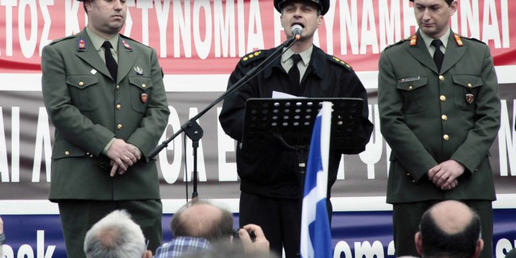Η Αθήνα έκανε την αρχή. Η κόρη του Θερμαϊκού συνεχίζει. Αύριο στη Θράκη μας, στην Κρήτη μας, στο Καστελόριζό μας. Παντού από άκρη σε άκρη σε όλη την Ελλάδα. Σύντομα. Είμαστε και θα παραμείνουμε ενωμένοι. Τίποτα δεν μπορεί να σταματήσει το ποτάμι που ξεκίνησε. Το πρόσημό του είναι θετικό. Φουσκώνει. Αντρειώνεται. Γίνεται χείμαρρος. Οι συνάδελφοι περιμένουν. Αρχίσαμε. Συνεχίζουμε. Δεν φοβόμαστε να διεκδικήσουμε το αυτονόητο. Εκπαιδευόμαστε για τα δύσκολα. Αυτά είναι εύκολα. Τίποτα για μας. Δεν φοβόμαστε να πούμε δυνατά: «φτάνει πια στην εξαθλίωση του Ελληνικού λαού», «δεν αντέχουμε άλλο», «αλλάξτε ρότα», «υψώστε τείχος στους ξένους κατακτητές», «Ελλάδα χωρίς Τροϊκάνες δανειστές θα υπάρξει, Ελλάδα χωρίς Έλληνες δεν μπορεί να υπάρξει ποτέ», «ο Έλληνας δεν πουλιέται, δεν εξαγοράζεται και δεν υποδουλώνεται», «η Ελλάδα δεν πωλείται», «Έλληνες είμαστε όλοι εμείς, οι στρατιωτικοί, οι αστυνομικοί, οι λιμενικοί, οι πυροσβέστες, οι, δικαστικοί, οι εκπαιδευτικοί, οι γιατροί, οι εργαζόμενοι συγγενείς μας, οι αγρότες πατεράδες μας, οι φοιτητές, οι μαθητές, τα παιδιά και τα εγγόνια μας».