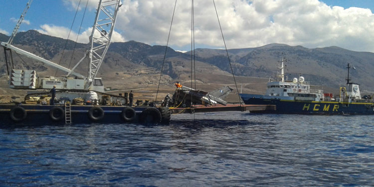 Στην επιχείρηση ανέλκυσης του αεροσκάφους, από βάθος περίπου χιλίων μέτρων (1000m), συμμετείχαν ομάδα εμπειρογνωμόνων της Επιτροπής Διερεύνησης του Αεροπορικού Ατυχήματος της Πολεμικής Αεροπορίας (ΠΑ), δύτες της Κινητής Ομάδας Συντήρησης Υποβρύχιων και Θαλάσσιων Εγκαταστάσεων (ΚΟΣΥΘΕ) της ΠΑ και ερευνητικό προσωπικό του Ελληνικού Κέντρου Θαλάσσιας Έρευνας (ΕΛΚΕΘΕ), το οποίο είχε και την ευθύνη υλοποίησης της ανέλκυσης.