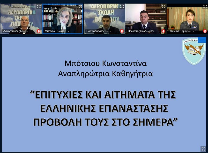 Ημερίδα με θέμα «200 χρόνια από την Ελληνική Επανάσταση του 1821 – Ιστορικό πλαίσιο και σύγχρονες προεκτάσεις» πραγματοποιήθηκε διαδικτυακά μέσω της ηλεκτρονικής πλατφόρμας της Πολεμικής Αεροπορίας, από την Αεροπορική Σχολή Πολέμου (ΑΣΠ).