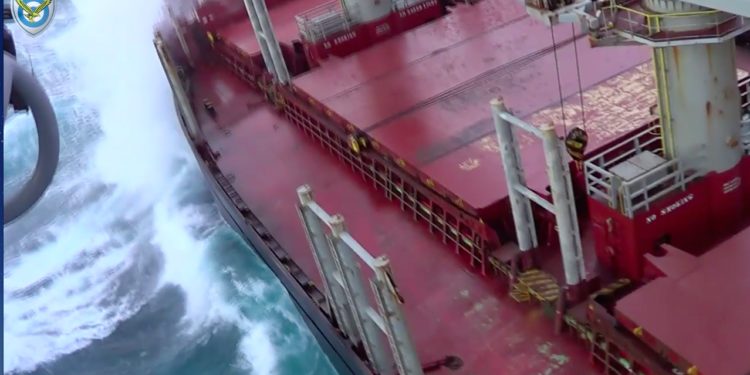Η επιχείρηση λόγω των καιρικών συνθηκών δεν ήταν καθόλου εύκολη. Το βίντεο της ΠΑ τραβηγμένο μέσα από ενα ελικόπτερο Super Puma το αποδεικνύει.