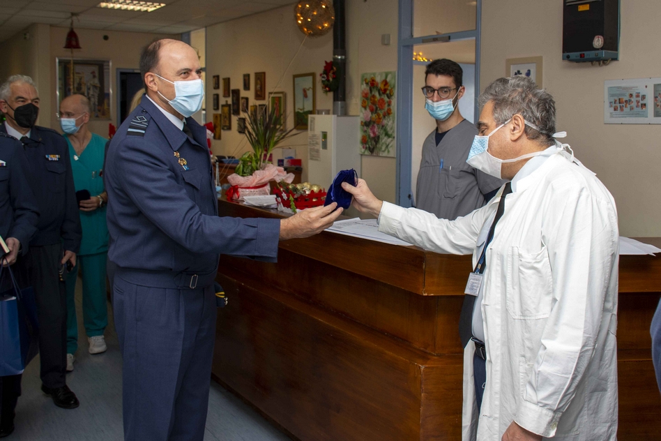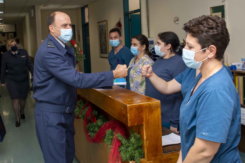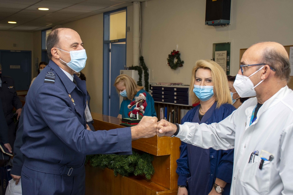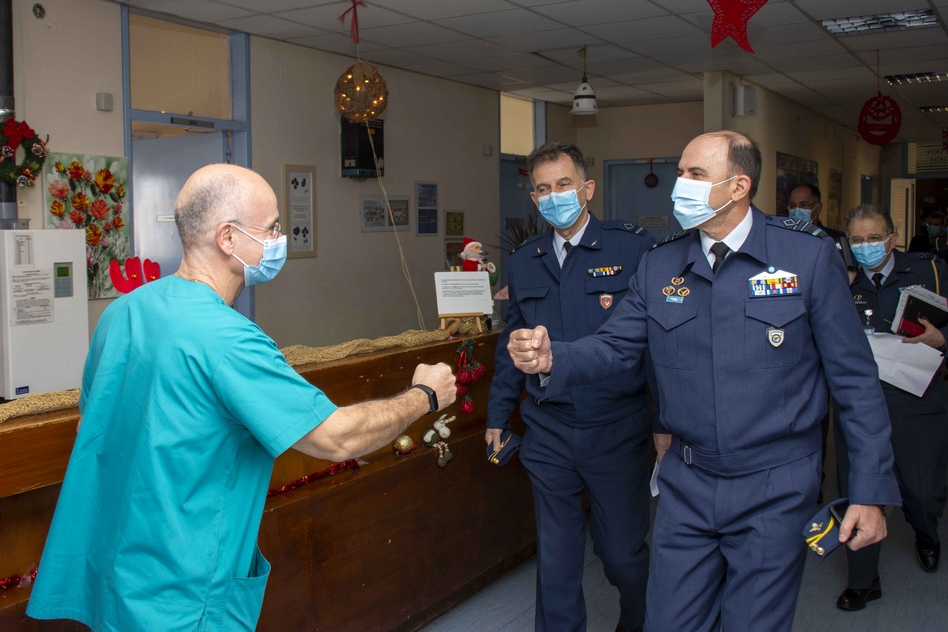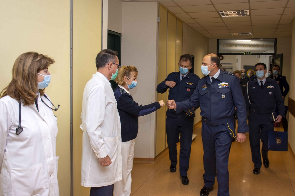 Ο αρχηγός ΓΕΑ αντάλλαξε ευχές με το προσωπικό του νοσοκομείου και ευχήθηκε καλές γιορτές και γρήγορη ανάρρωση στους ασθενείς.