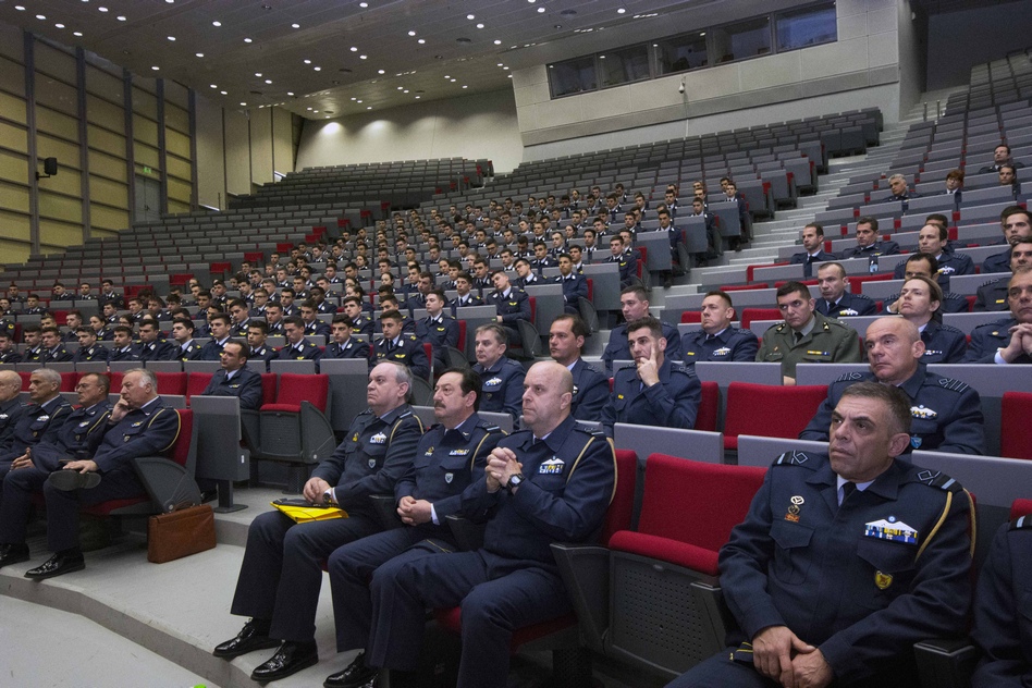 Πριν την έναρξη της συνεδρίασης, ο Αρχηγός μίλησε στους Ικάρους και αναφέρθηκε στους βασικούς πυλώνες στρατιωτικής, ακαδημαϊκής και πτητικής εκπαίδευσης της Σχολής, καθώς και στο έργο που επιτελεί το διδακτικό προσωπικό ώστε να δημιουργήσει τους αυριανούς ηγέτες της Πολεμικής Αεροπορίας.