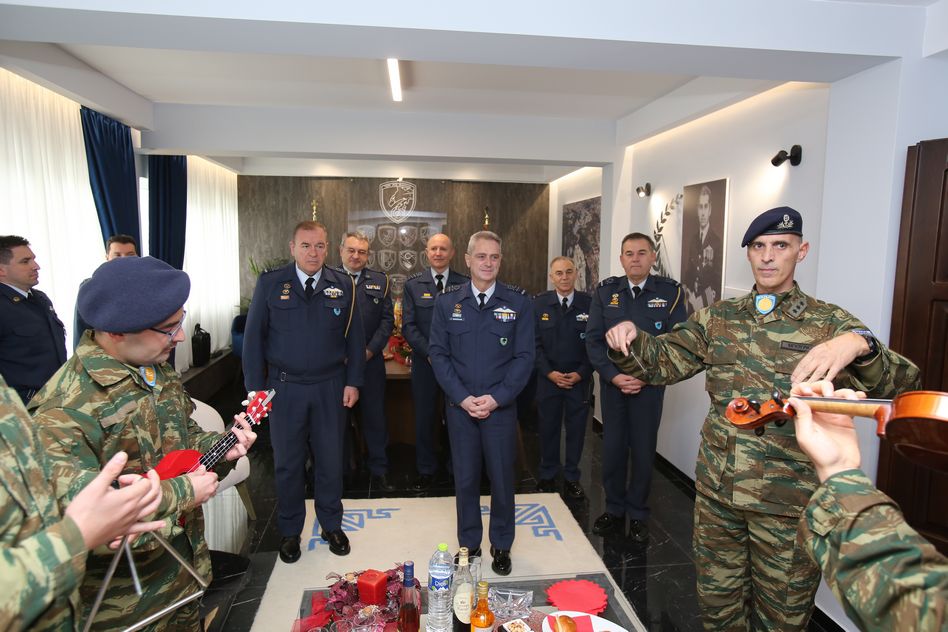 – Παραδοσιακά κάλαντα και πρωτοχρονιάτικες μελωδίες έψαλαν στον αρχηγό Τακτικής Αεροπορίας (ΤΑ), αντιπτέραρχο Γεώργιο Φασούλα, και στην ηγεσία του ΑΤΑ η μπάντα της 1ης Στρατιάς/EU-OHQ, η μικτή χορωδία της 110 Πτέρυγας Μάχης και το 1ο Σύστημα Αεροπροσκόπων Λάρισας.