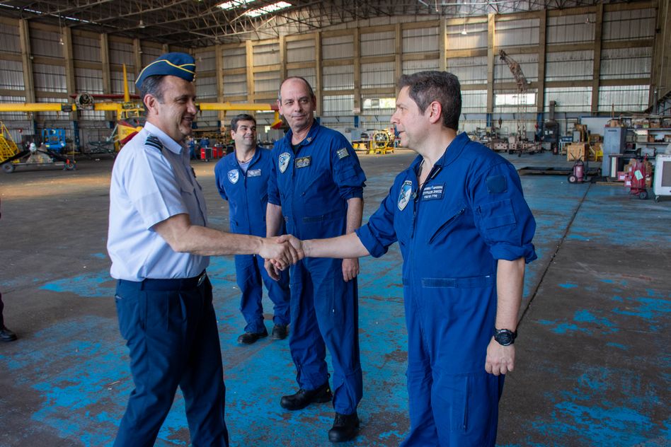 Τον αρχηγό ΓΕΑ υποδέχθηκαν ο διοικητής της ΔΑΥ αντιπτέραρχος Πέτρος Χατζήρης και ο διοικητής της 112ΠΜ ταξίαρχος Βασίλειος Τόσιος.