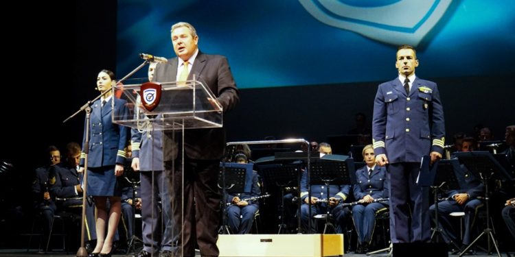 Κύριε Αρχηγέ, θα ήθελα να σας συγχαρώ για την ομιλία σας, στην οποία πολύ εύστοχα αναφερθήκατε τόσο στο ένδοξο παρελθόν της Πολεμικής Αεροπορίας όσο και στις μελλοντικές προκλήσεις που θα αντιμετωπίσει στo πλαίσιο της αποστολής της. Το όραμα το δικό σας και όλων των αεροπόρων, για μια ισχυρή Πολεμική Αεροπορία στην υπηρεσία του Ελληνικού Έθνους αποτελεί για την κυβέρνησή μας καίρια πολιτική επιλογή και ταυτόχρονα επιλογή του συνόλου του Έθνους, ολόκληρου του ελληνικού λαού. .