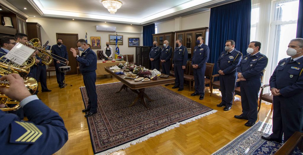 Την Παρασκευή 24 Δεκεμβρίου 2021, η Μπάντα της Πολεμικής Αεροπορίας έψαλε παραδοσιακά κάλαντα και χριστουγεννιάτικες μελωδίες, στον Αρχηγό του Γενικού Επιτελείου Αεροπορίας (ΓΕΑ), Αντιπτέραρχο (Ι) Γεώργιο Μπλιούμη και στην Ηγεσία του Επιτελείου.