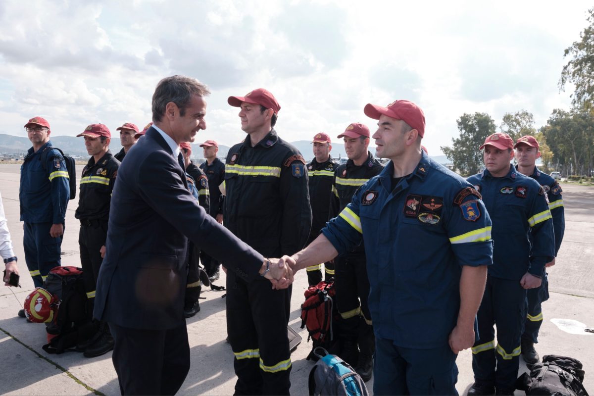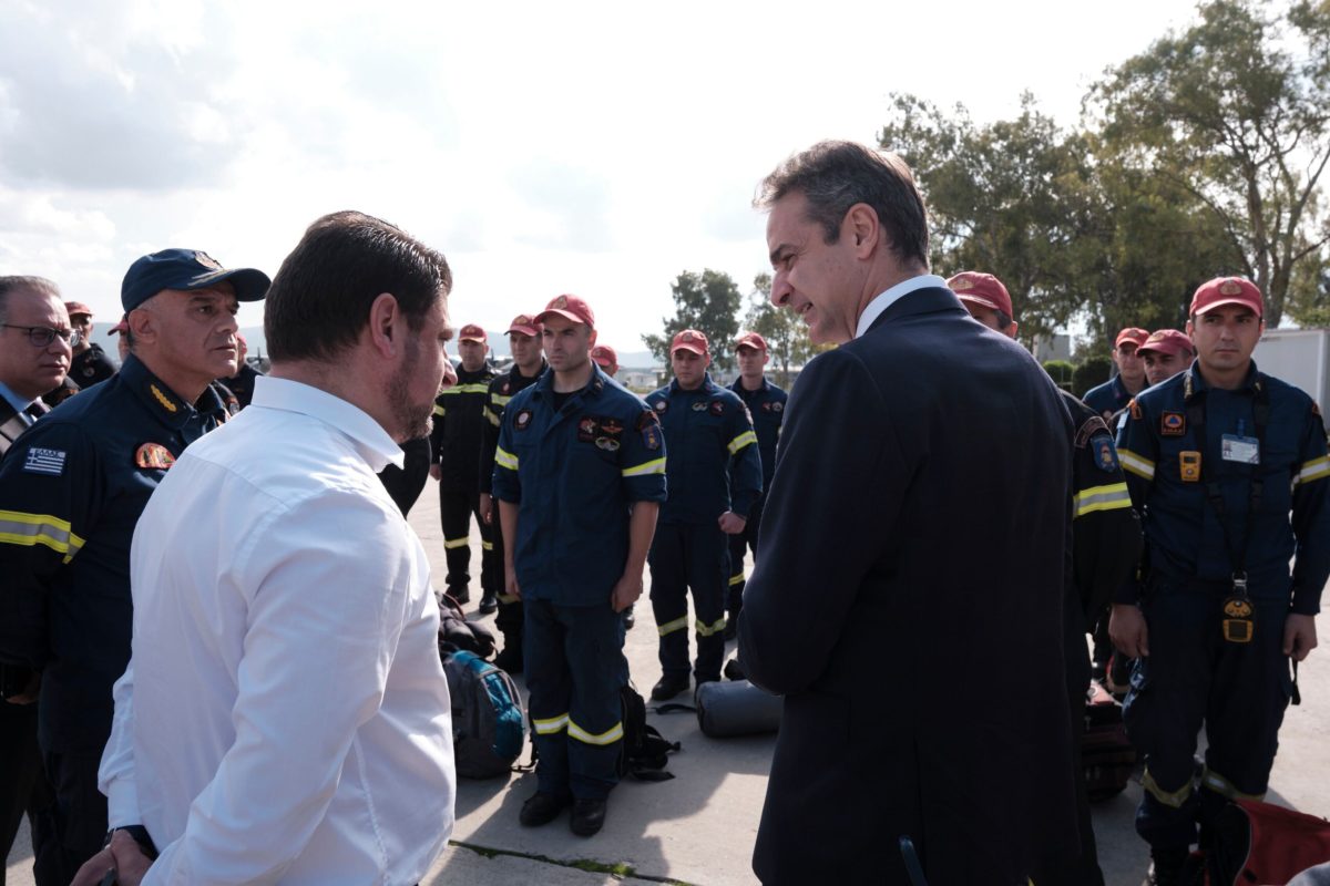 Ο κ. Μητσοτάκης συνομίλησε με τα στελέχη της Ειδικής Μονάδας της Πυροσβεστικής Υπηρεσίας, τα οποία πρόκειται να συνδράμουν τις αλβανικές αρχές στις επιχειρήσεις έρευνας και διάσωσης και τους ευχήθηκε καλή δύναμη στην αποστολή τους.
