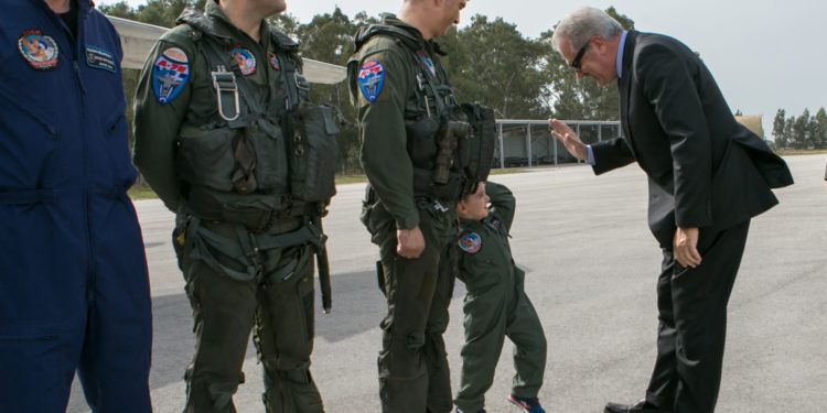 Ο πιο μικρός πιλότος και σε μπόϊ και σε ηλικία συναντήθηκε με την “κορυφή” του στρατεύματος. Η φωτογραφία από τον Άραξο όπου πριν μερικές μέρες ο ΥΕΘΑ Δημήτρης Αβραμόπουλος βρέθηκε για την τελετή απόσυρσης των Α 7.