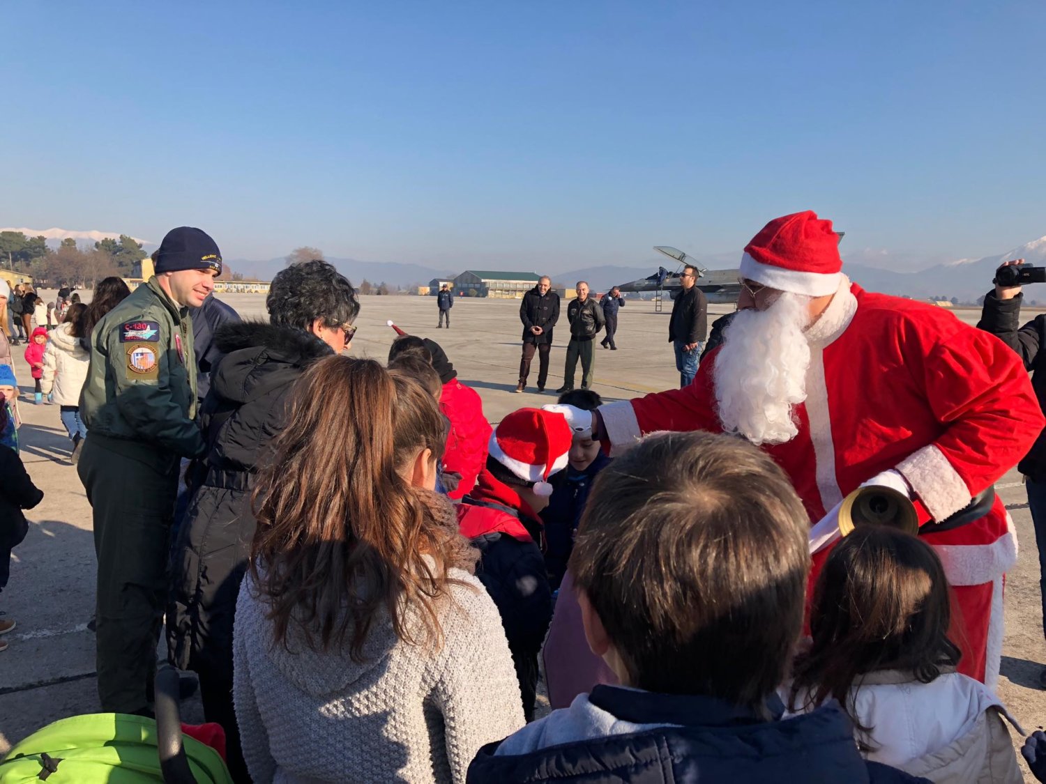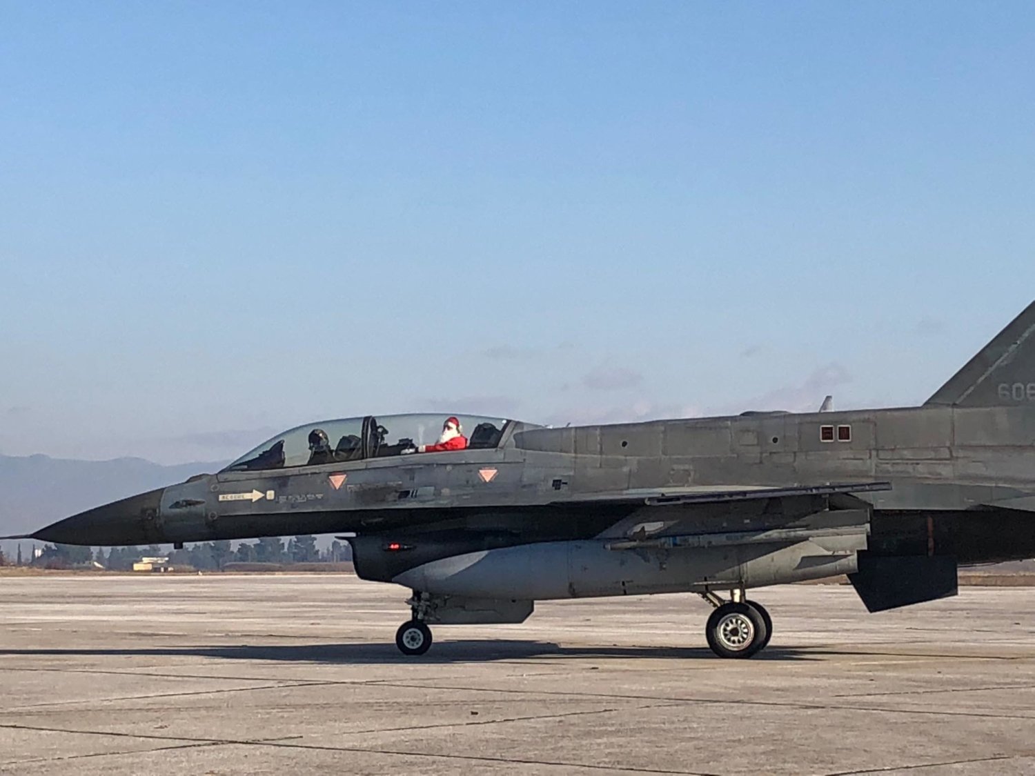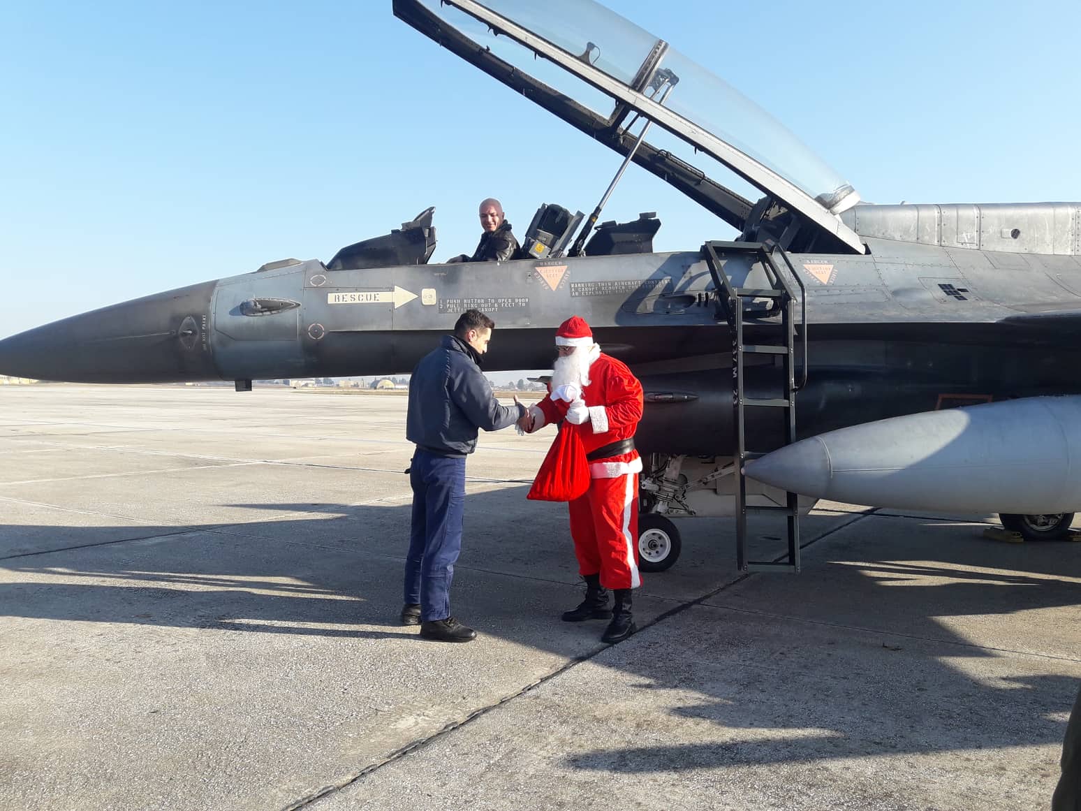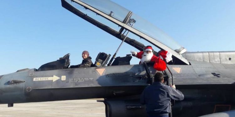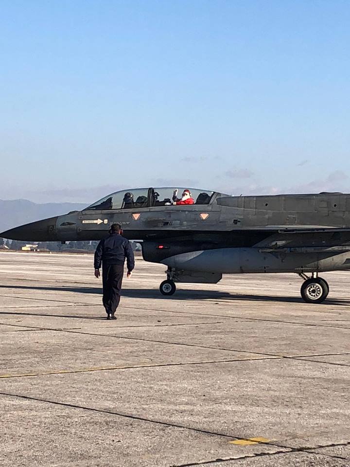 Με μαχητικό αεροσκάφος F-16 της Πολεμικής Αεροπορίας «προσγειώθηκε» στην πίστα της 110 Π.Μ. στη Λάρισα το πρωί της Πέμπτης, ο Άγιος Βασίλης δίνοντας χαρά σε μικρούς και μεγάλους που βρέθηκαν στην πίστα του αεροδρομίου για την καθιερωμένη εορταστική εκδήλωση.