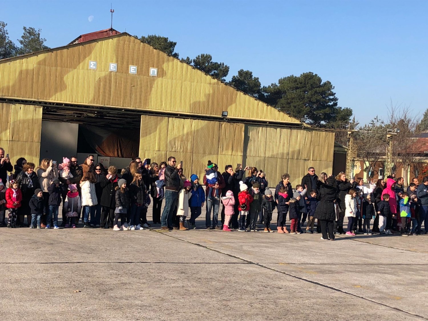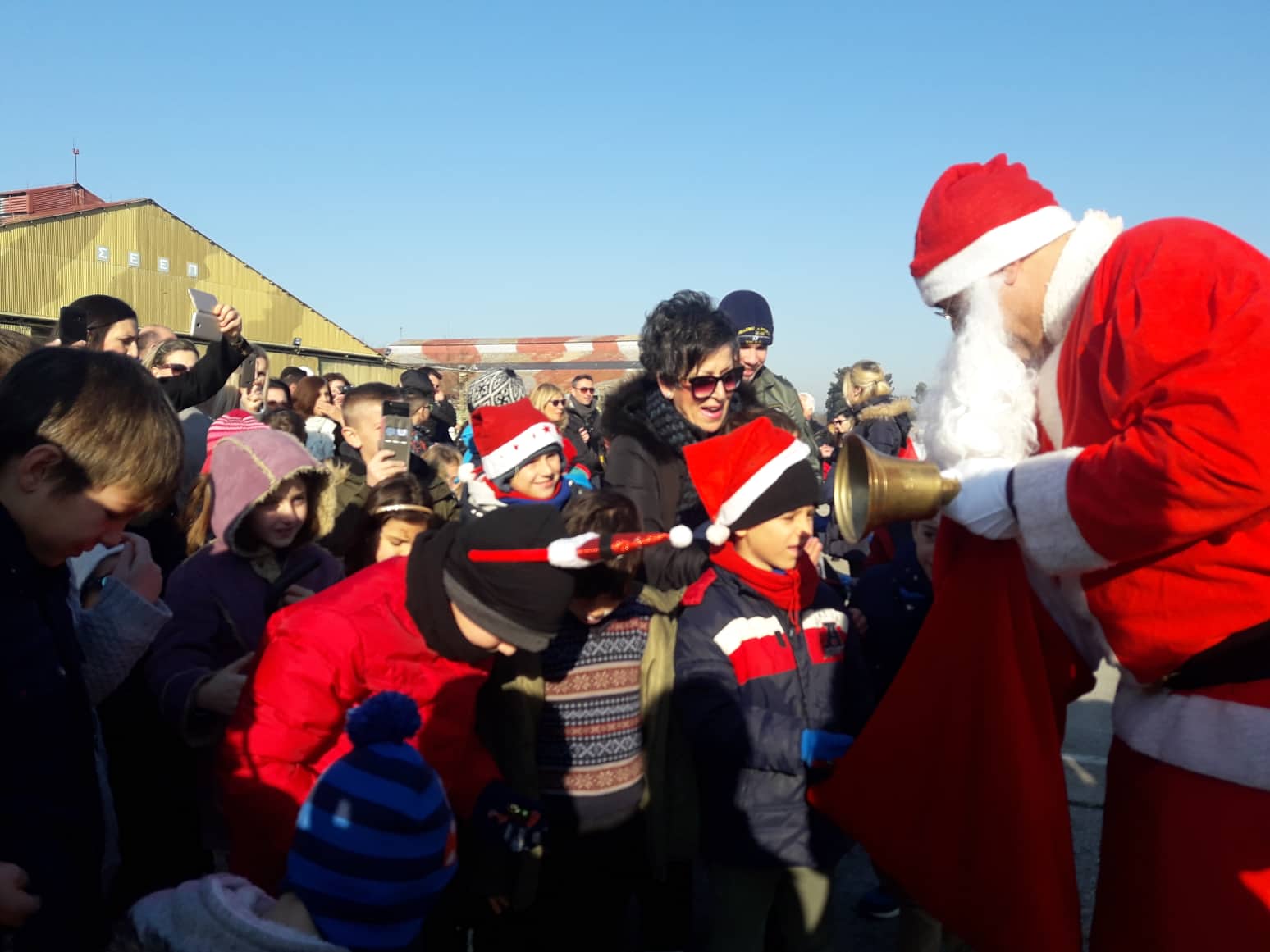 Ο Άγιος μοίρασε δώρα σε παιδιά των κοινωνικών δομών του δήμου Λάρισας, τα οποία παρακολούθησαν με δέος την προσγείωσή του στην πίστα.