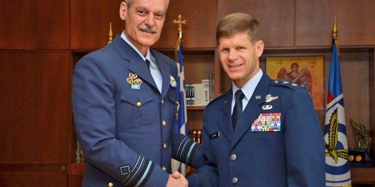 O Αρχηγός του Γενικού Επιτελείου Αεροπορίας, Αντιπτέραρχος (Ι) Ευάγγελος Τουρνάς συναντήθηκε στο γραφείο του με τον Υποδιοικητή του Κέντρου Συνδυασμένων Αεροπορικών Επιχειρήσεων (Combined Air Operations Center 7 – CAOC 7), Υποπτέραρχο Mark W. Graper.