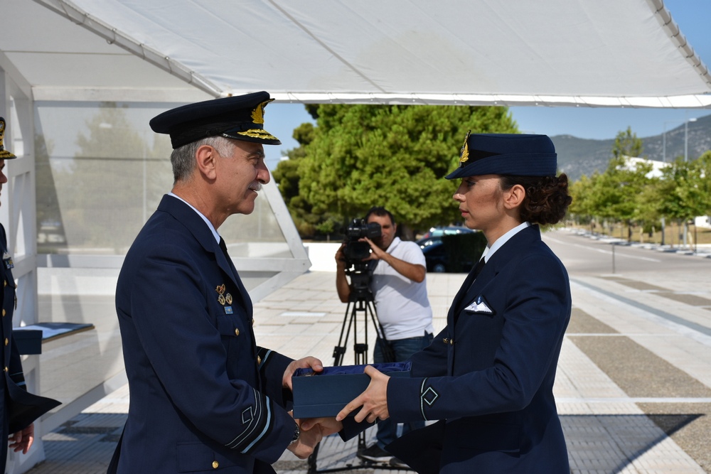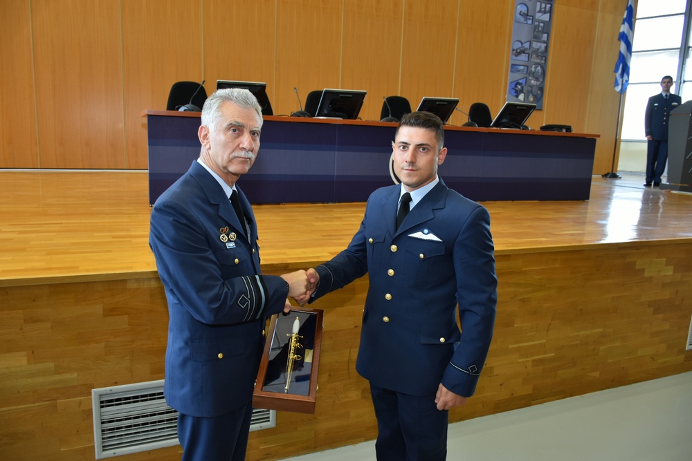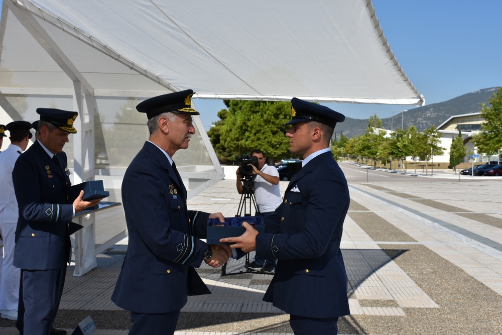 Στη διάρκεια της τελετής βραβεύτηκαν οι πρωτεύσαντες στην Ακαδημαϊκή Εκπαίδευση, Ανθυποσμηναγός (Ι) Γεωργία Καφαντόγια- Κριεμπαρδή, Ανθυποσμηναγός (ΜΑ) Βασίλειος Καμηλάρης και Ανθυποσμηναγός (ΕΑ) Αθανάσιος Καραμήτρος. Στη Στρατιωτική Εκπαίδευση βραβεύτηκε ο Ανθυποσμηναγός (Ι) Γεώργιος Κεραμιδάς ενώ στον πρωτεύσαντα Ανθυποσμηναγό (Ι) Κεραμιδά επιδόθηκε βραβείο από τον Ιταλό Ακόλουθο Άμυνας στην Ελλάδα, Σμήναρχο Enrico Frasson.