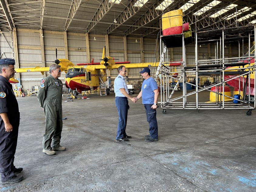 Κατά τη διάρκεια της επίσκεψής του, ο Αρχηγός ΓΕΑ, ενημερώθηκε για τα τρέχοντα θέματα των Μοιρών Αεροπυρόσβεσης, επισκέφθηκε την 355 Μοίρα Τακτικών Μεταφορών (CL-215), το Κλιμάκιο της 383 Μοίρας Ειδικών Επιχειρήσεων και Αεροπυρόσβεσης (CL-415), το ιταλικό και το γαλλικό Κλιμάκιο (CL-415) που έχουν μετασταθμεύσει στην 112ΠΜ και τη Μοίρα Συντήρησης Αεροσκαφών, όπου συνομίλησε με το προσωπικό τους και ενημερώθηκε για τις αποστολές αεροπυρόσβεσης και το έργο συντήρησης των πυροσβεστικών αεροσκαφών.
