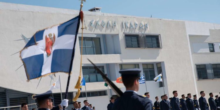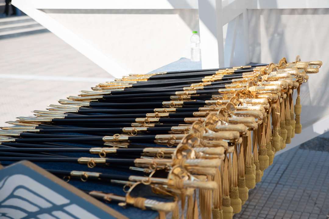 Τα ξίφη στους νέους και νέες ανθυποσμηναγούς επέδωσε η Πρόεδρος της Δημοκρατίας, Κατερίνα Σακελλαροπούλου, κατά τη διάρκεια ειδικής τελετής που πραγματοποιήθηκε στις εγκαταστάσεις της σχολής Ικάρων στην αεροπορική βάση Δεκελείας στο Τατόι. Την Πρόεδρο συνόδευε ο υπουργός Εθνικής Άμυνας, Νικόλαος Παναγιωτόπουλος.