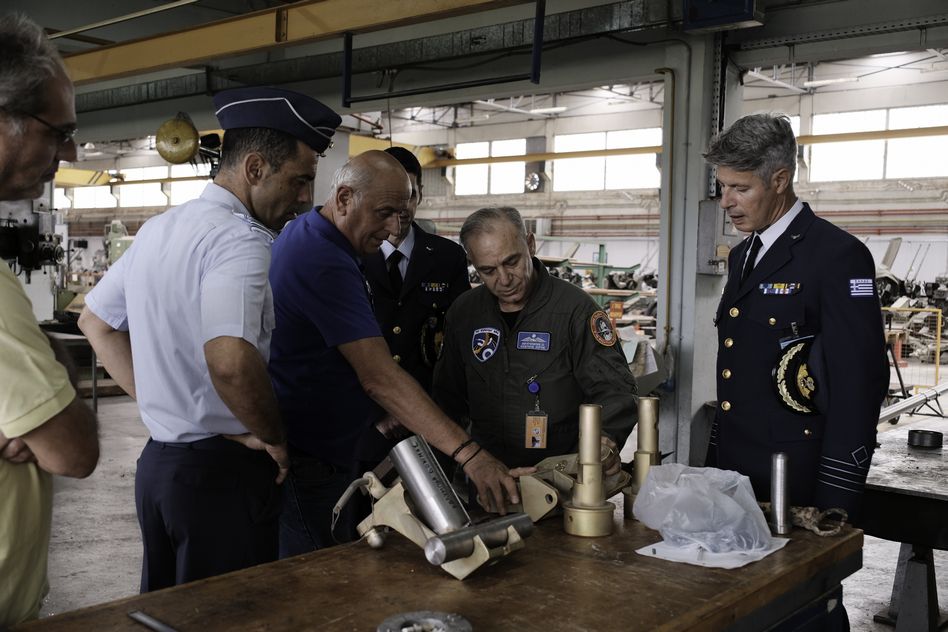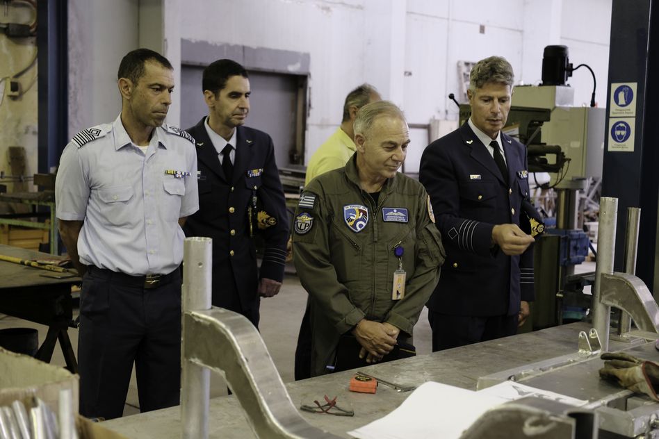 Εκεί, τον υποδέχθηκε ο Διοικητής του Εργοστασίου, Σμήναρχος (ΜΑ) Παύλος Κουτσούκος.