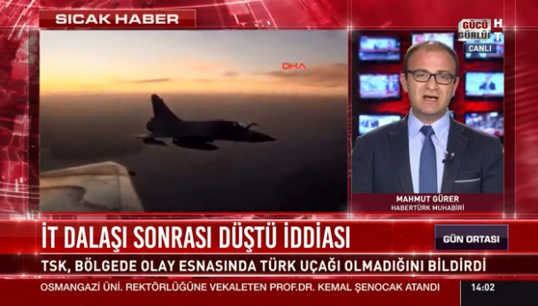Όπως μετέδωσε ο ανταποκριτής της Haberturk, Μαχμούτ Γκουρέρ, οι Τουρκικές Ένοπλες Δυνάμεις ανέφεραν πως δεν υπήρχε τουρκικό αεροσκάφος στην περιοχή, τη στιγμή του περιστατικού.