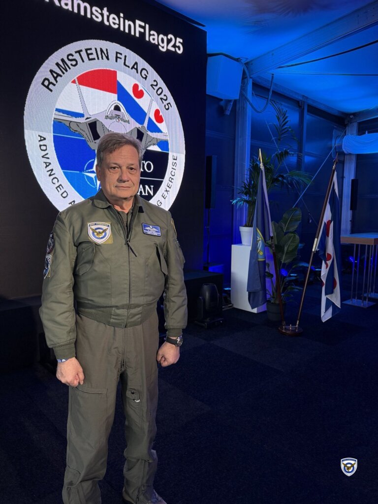 Ο αρχηγός του Γενικού Επιτελείου Αεροπορίας (ΓΕΑ) αντιπτέραρχος (Ι) Δημοσθένης Γρηγοριάδης, παραβρέθηκε, χθες, Τετάρτη 9 Απριλίου 2025, στην Ημέρα Διακεκριμένων Επισκεπτών της άσκησης «Ramstein Flag 25», στην αεροπορική βάση Leeuwarden της Ολλανδίας.