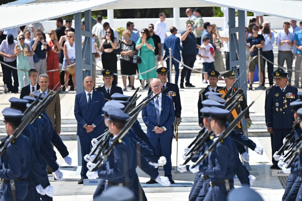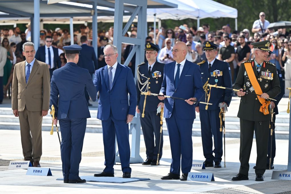 Ο Υπουργός Εθνικής Άμυνας, Νίκος Δένδιας, παρέστη σήμερα, Τρίτη 8 Ιουλίου, ως εκπρόσωπος του πρωθυπουργού Κυριάκου Μητσοτάκη, στην τελετή ορκωμοσίας των νέων Ανθυποσμηναγών τάξεως 2025, στη Σχολή Ικάρων στο Τατόι, ενώπιον του Προέδρου της Δημοκρατίας Κωνσταντίνου Τασούλα.