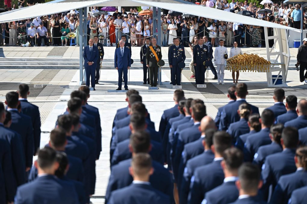 Όπως ανακοινώθηκε, ο Πρόεδρος της Δημοκρατίας επέδωσε και τα ξίφη στους ορκισθέντες ανθυποσμηναγούς της Πολεμικής Αεροπορίας, ενώ δοξολογία τέλεσε ο Μητροπολίτης Ιλίου, Αχαρνών και Πετρουπόλεως Αθηναγόρας.