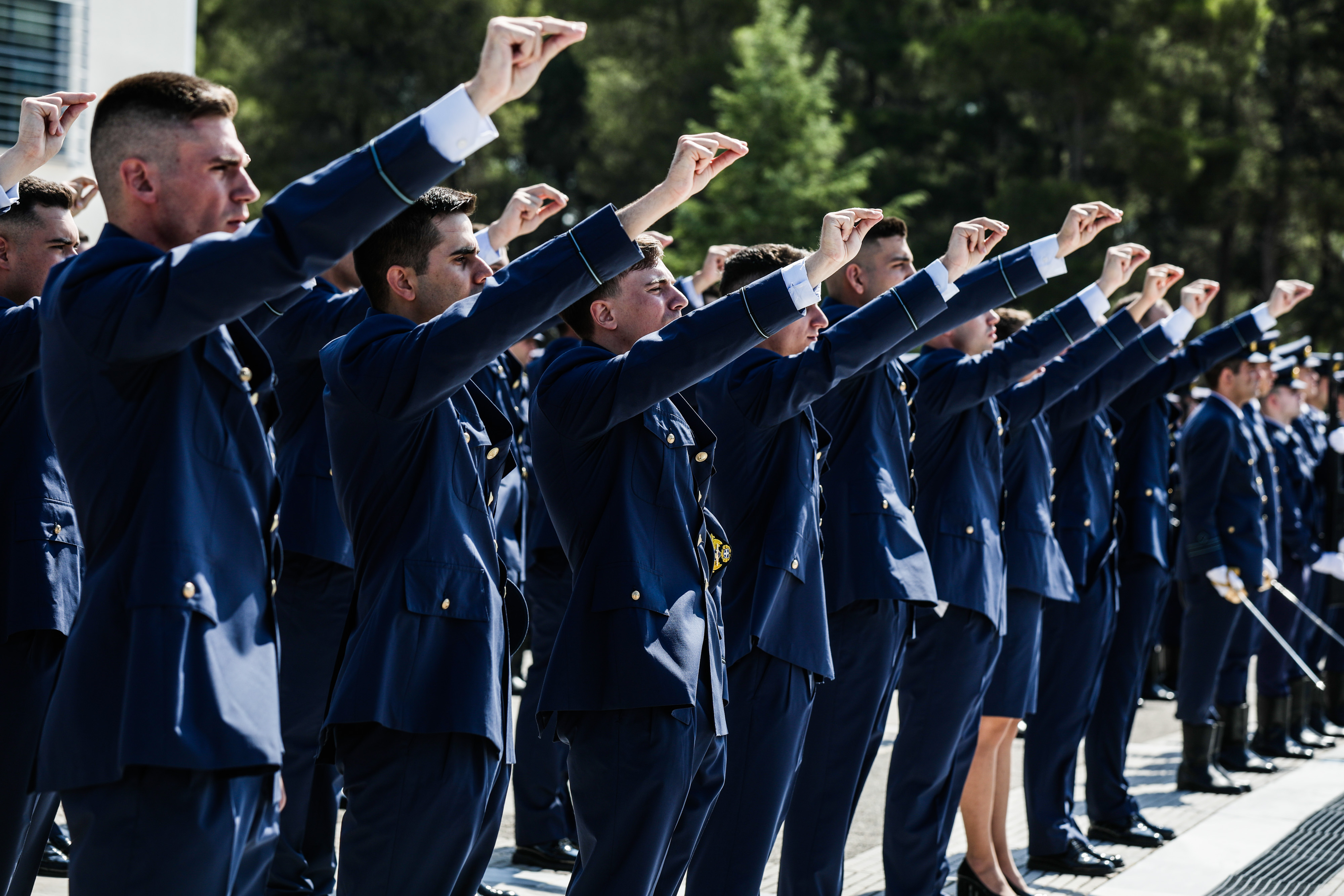 61 νέοι Ανθυποσμηναγοί της 🇬🇷 #ΠΑ έδωσαν σήμερα τον Ιερό Όρκο προς την Πατρίδα & παρέλαβαν τα Ξίφη τους από @PresidencyGR παρουσία @npanagioto & @nhardalias