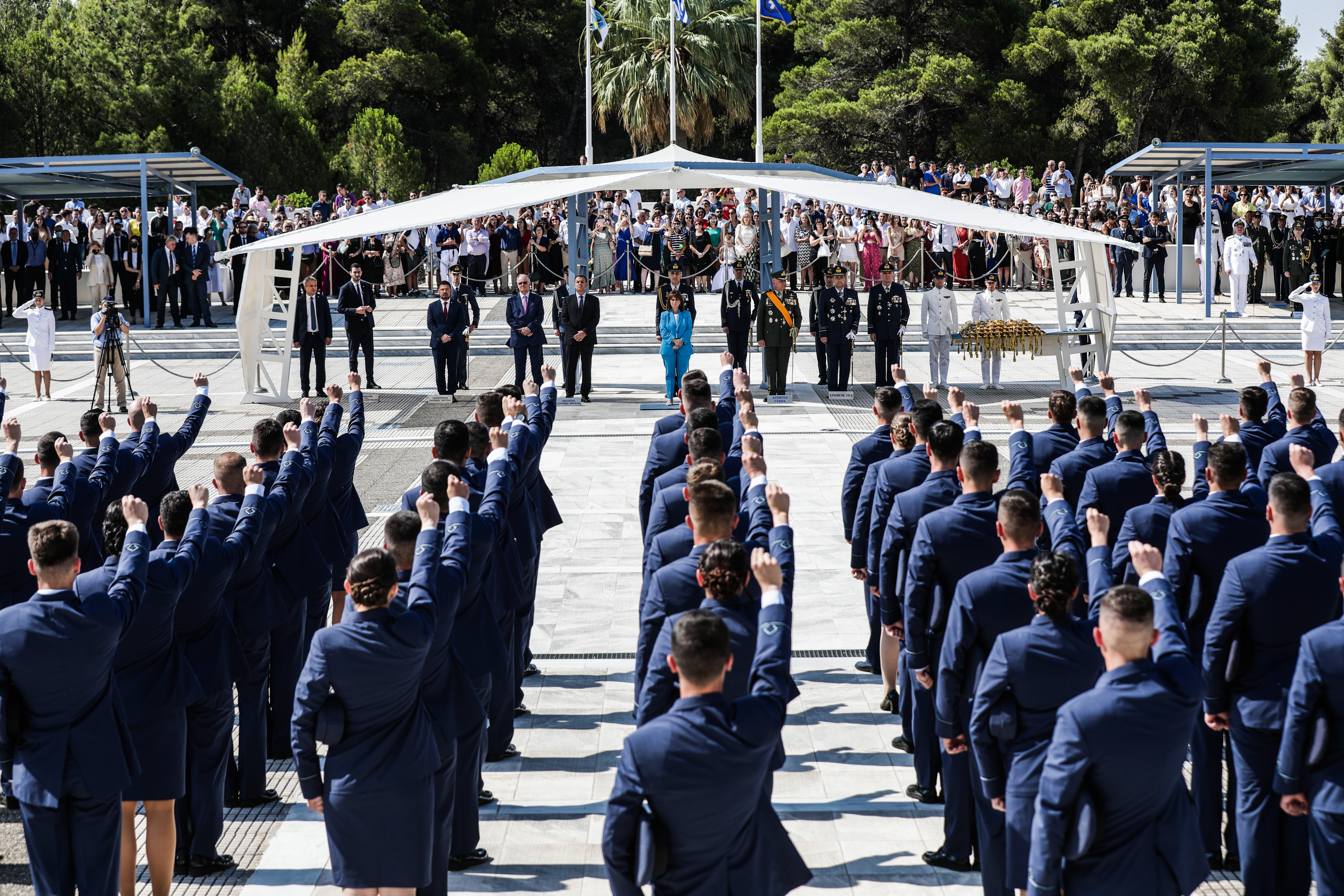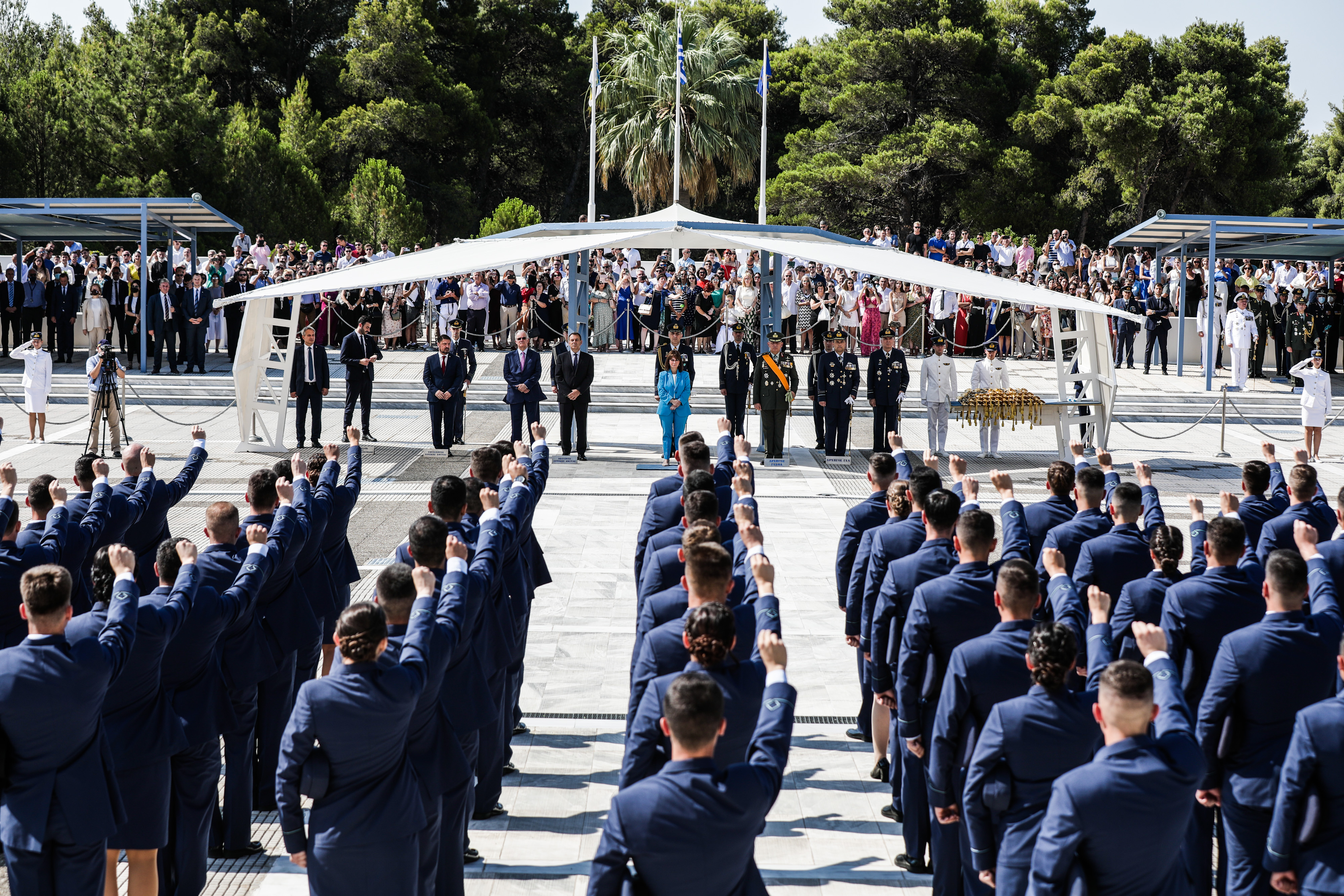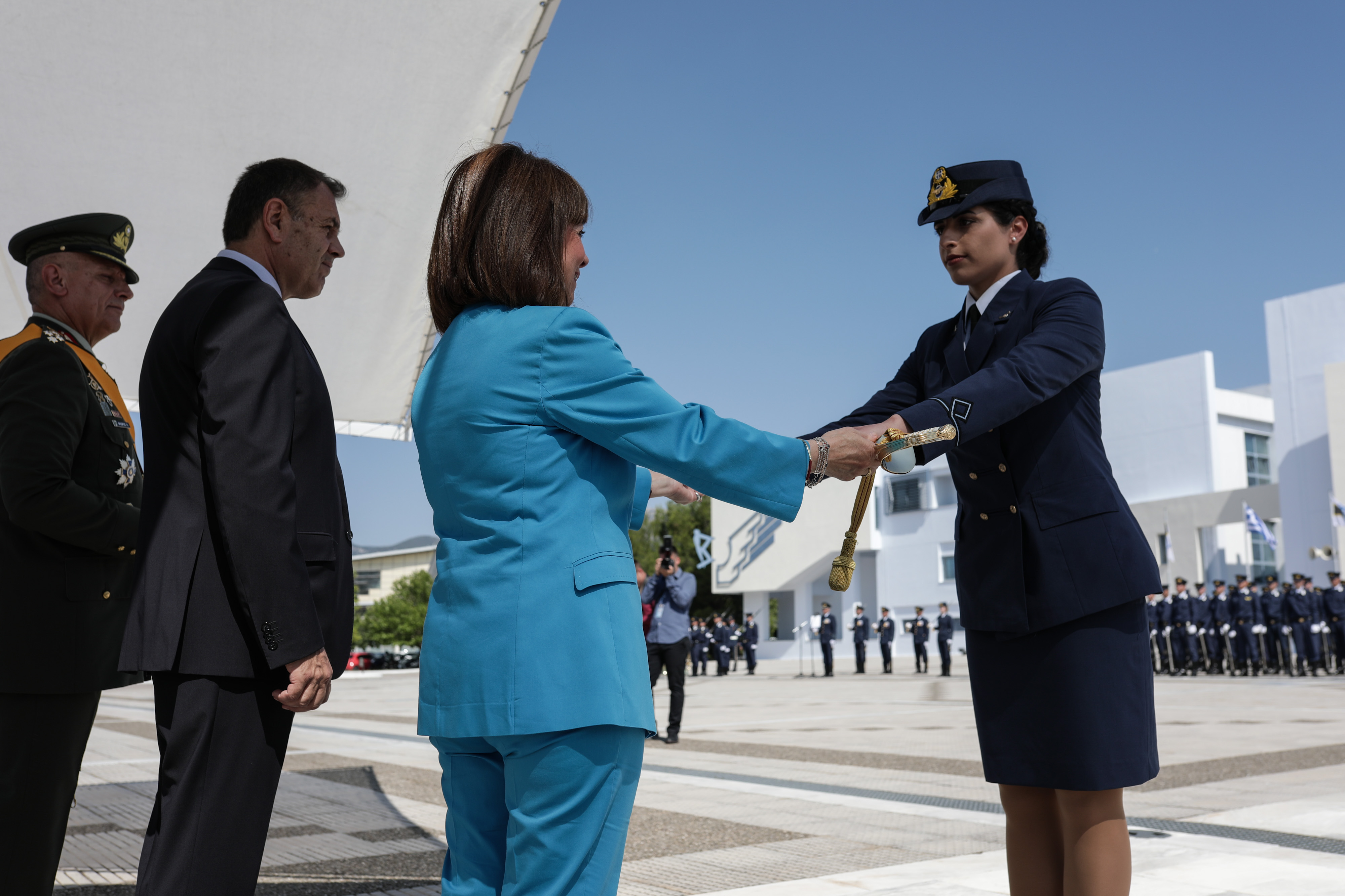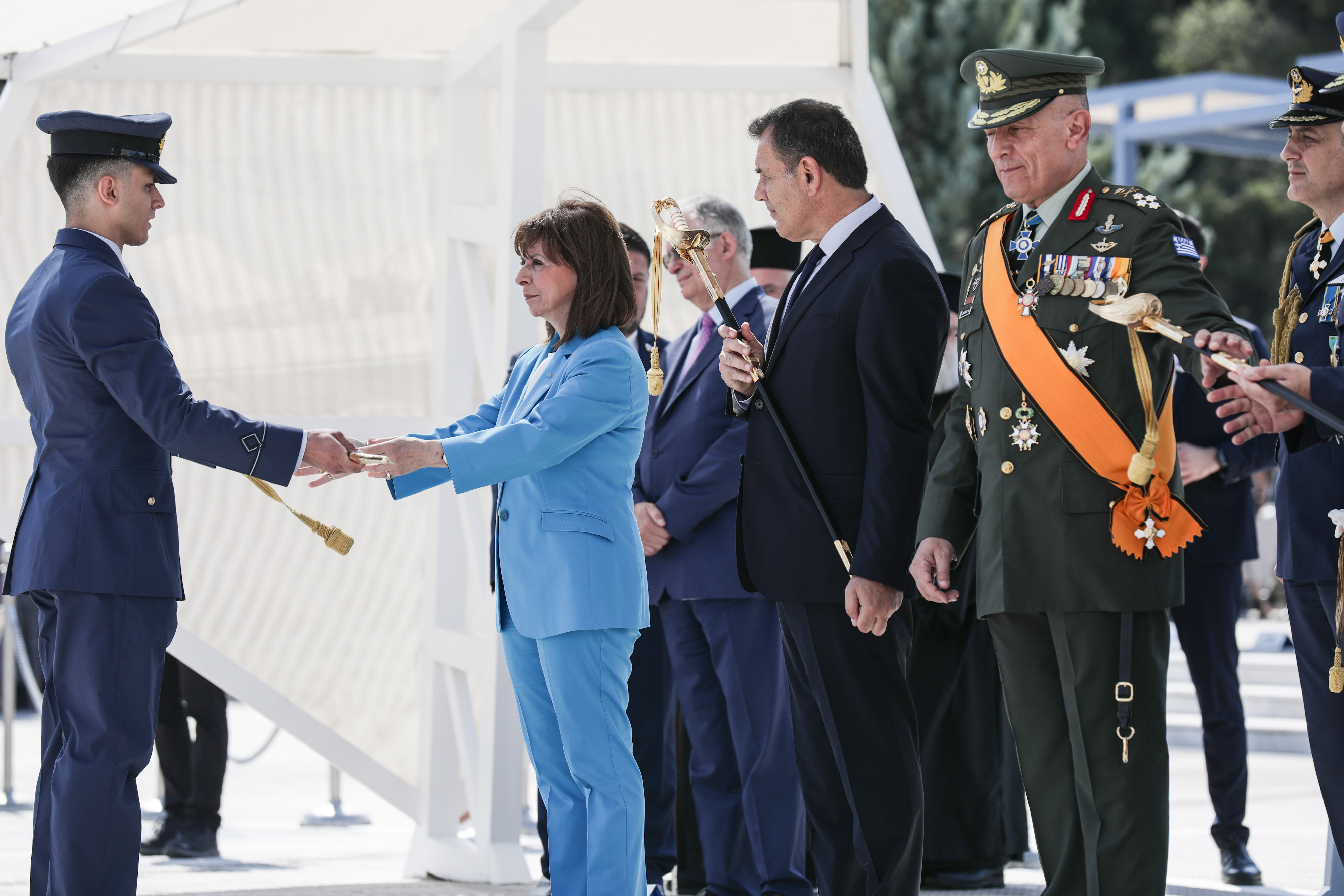 Τα ξίφη στους νέους Αξιωματικούς της Πολεμικής Αεροπορίας επέδωσε η Πρόεδρος της Δημοκρατίας κ. Κατερίνα Σακελλαροπούλου.