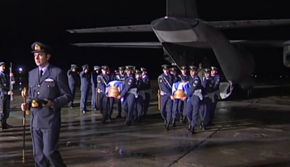 Ξημερώματα προσγειώθηκε το αεροσκάφος C-27 που μετέφερε τις σορούς των δύο χειριστών Σμηναγών του F -16 που έπεσε κατά την διάρκεια της απογείωσής του στην Αλμπαθέτα της Ισπανίας. Στο παρακάτω βίντεο ο επαναπατρισμός των Σορών του Σμηναγού (Ι) Παναγιώτη Λάσκαρη και του Σμηναγού (Ι) Αθανάσιου Ζάγκα.