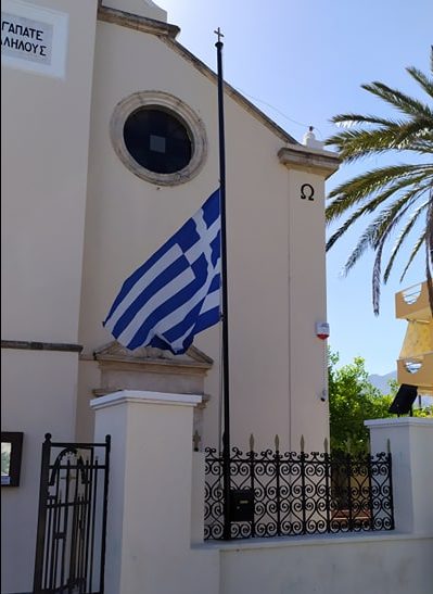 Η σημαία του Ιερού Ναού του Αγίου Αντωνίου κυματίζει μεσίστια από χθες μέχρι την ώρα που θα ταφεί ο άτυχος 33χρονος, ως ελάχιστος φόρος τιμής.