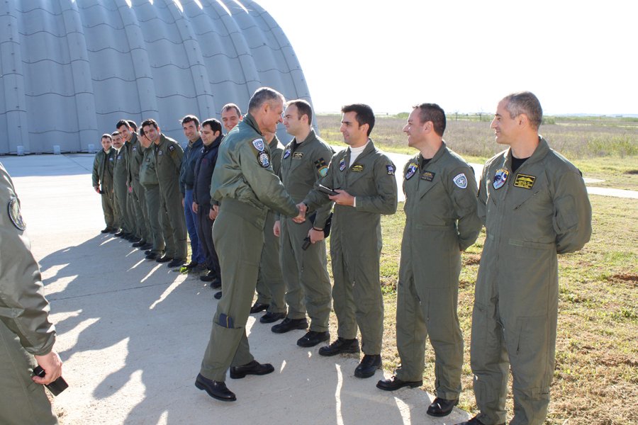 Κατά τη διάρκεια της επίσκεψης, ο Αρχηγός συνομίλησε και αντάλλαξε ευχές με τους Ιπτάμενους και Τεχνικούς των αεροσκαφών επιφυλακής, με το πλήρωμα και τους τεχνικούς του ελικοπτέρου επιφυλακής Έρευνας και Διάσωσης και με το προσωπικό της 130ΣΜ. Μεταξύ των οποίων και πολλές μάχιμες γυναίκες.