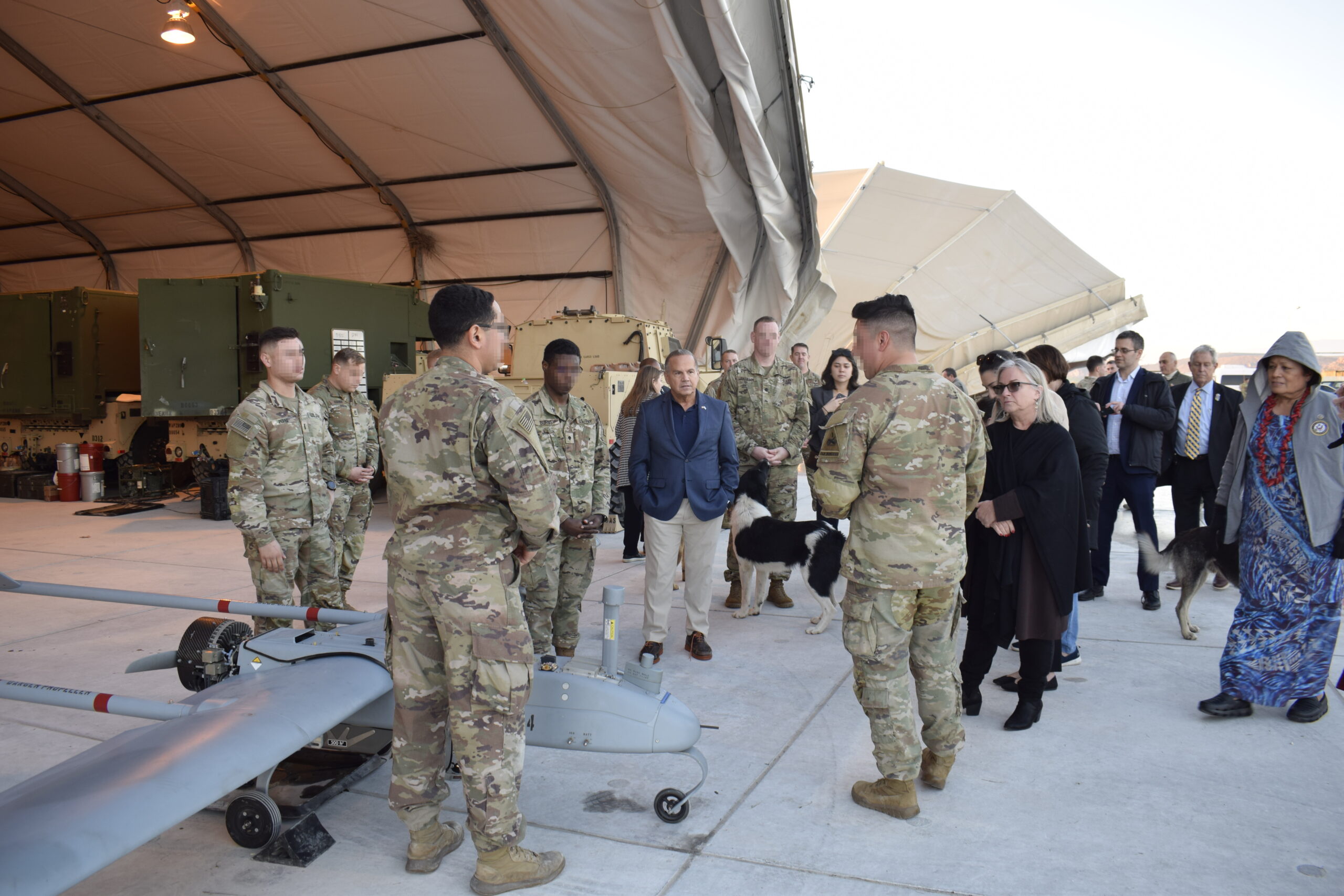 Η αντιπροσωπεία, που αντάλλαξε ευχές με το προσωπικό των Ενόπλων Δυνάμεων των ΗΠΑ που βρίσκεται αναπτυγμένο στις εγκαταστάσεις, αποτελείτο από το μέλος της Βουλής των Αντιπροσώπων και πρόεδρο της υποεπιτροπής της Βουλής των Αντιπροσώπων για την Μέση Ανατολή, την Βόρεια Αφρική και την παγκόσμια αντιτρομοκρατία David Cicilline ως επικεφαλής, καθώς και τα μέλη του Κογκρέσου Joe Wilson, Susan Wild, Sara Jacobs, Kat Cammack και Amata Coleman Radewagen.